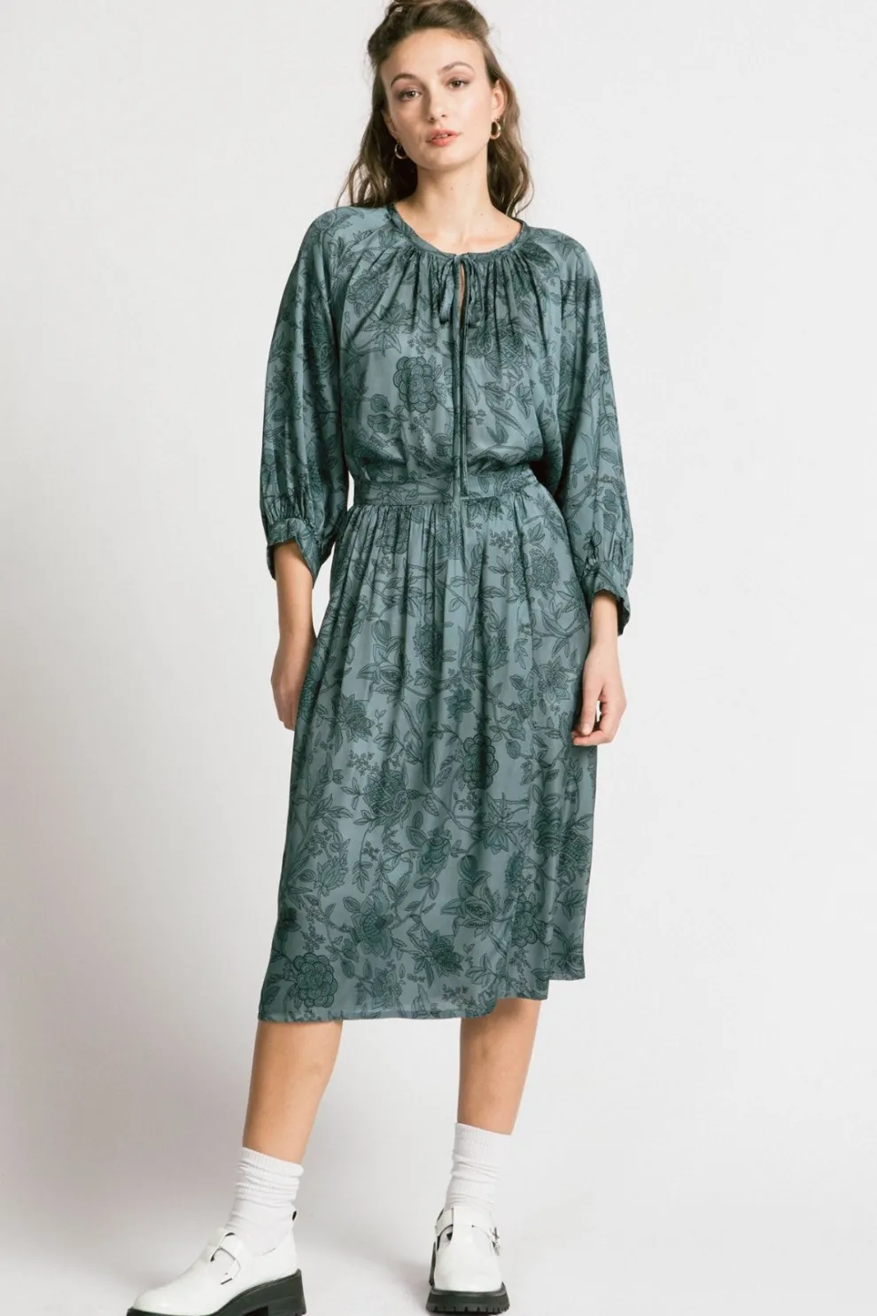 A flowing skirt that reaches the calf. It is loose but not too loose. In winter, wear it with an oversized sweater and boots.
