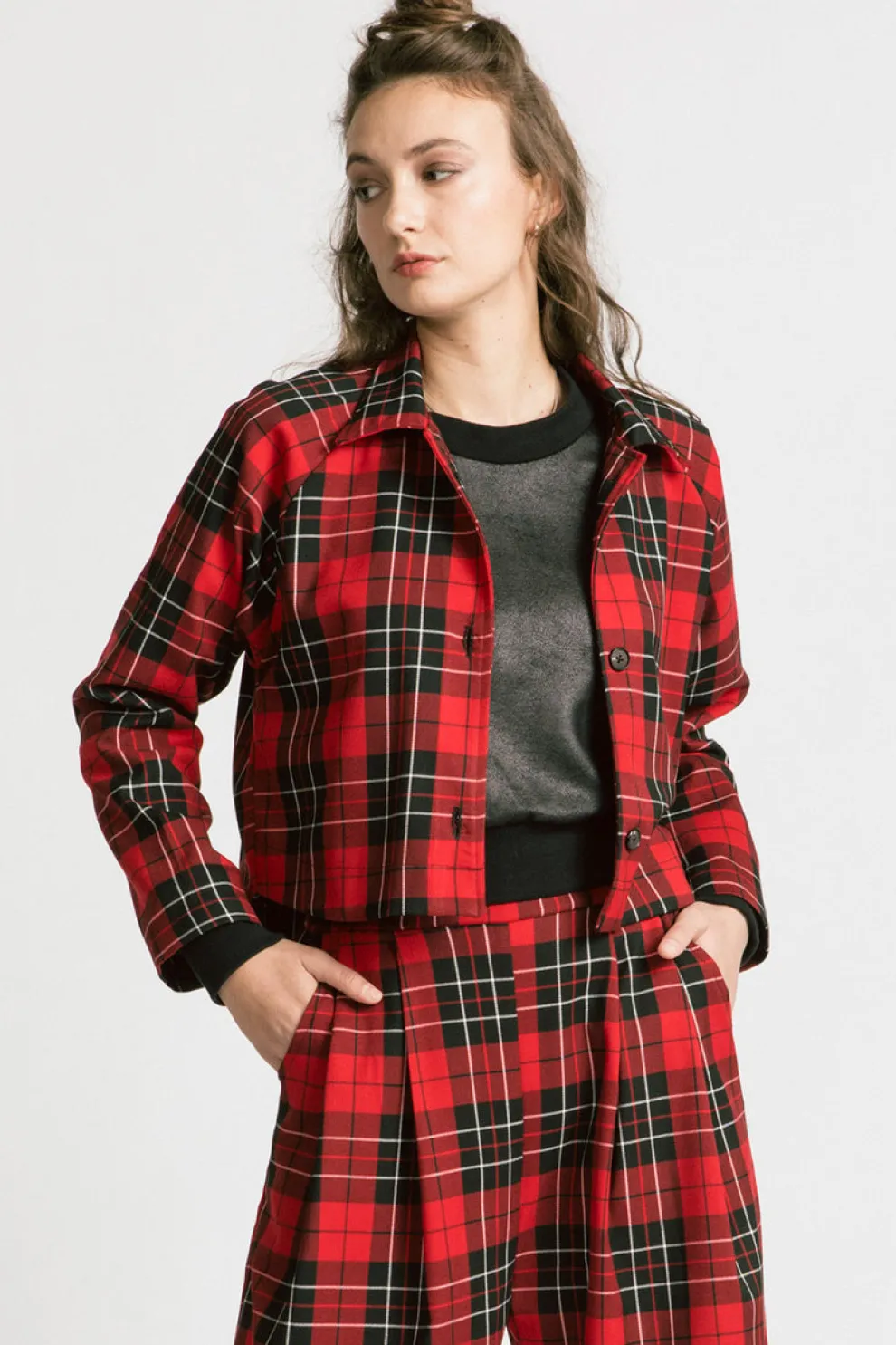 It can be a shirt or a jacket. In both cases, it is short, with buttons on the front and raglan sleeves. The sides are scalloped. Wear it with the matching Katherine pants or with a t-shirt underneath with jeans. Wear it with a t-shirt underneath and jeans.