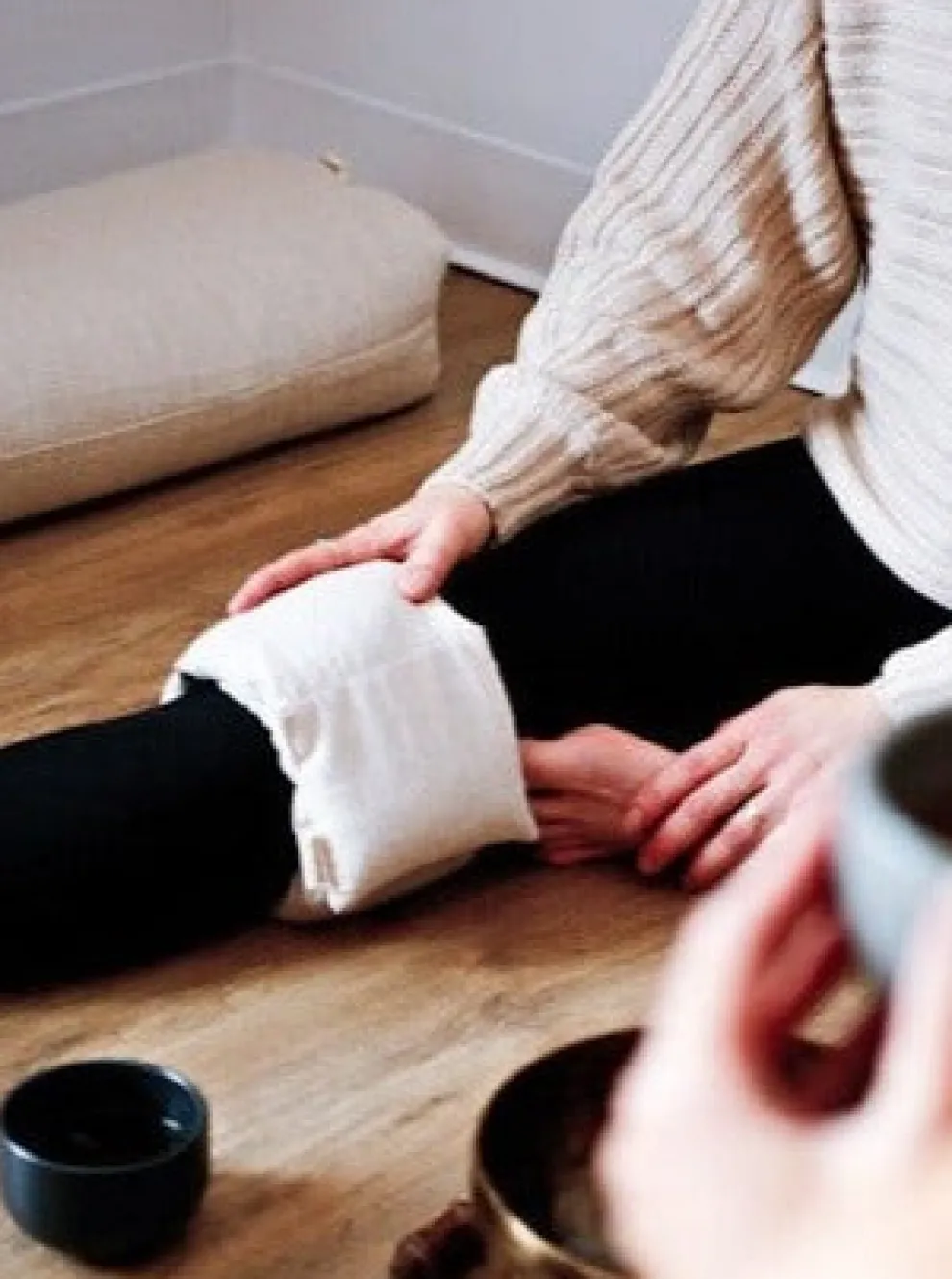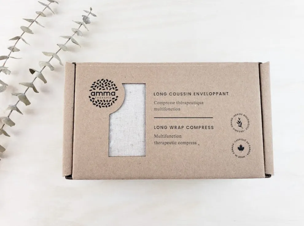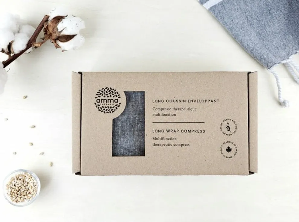 This heating pad fits perfectly around the shoulders and the neck. The center part goes up the neck to relax the muscles at the base of the skull. The weight of the cushion immediately relaxes the shoulders and it stays in place perfectly, even when you are standing.