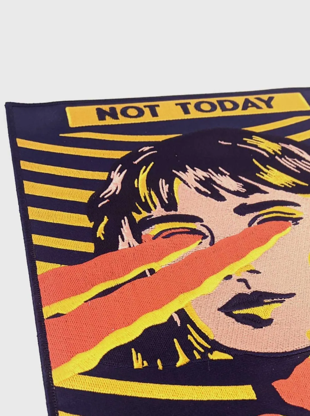 This patch fits perfectly on your jacket to warn potential enemies (people walking too close to you).
