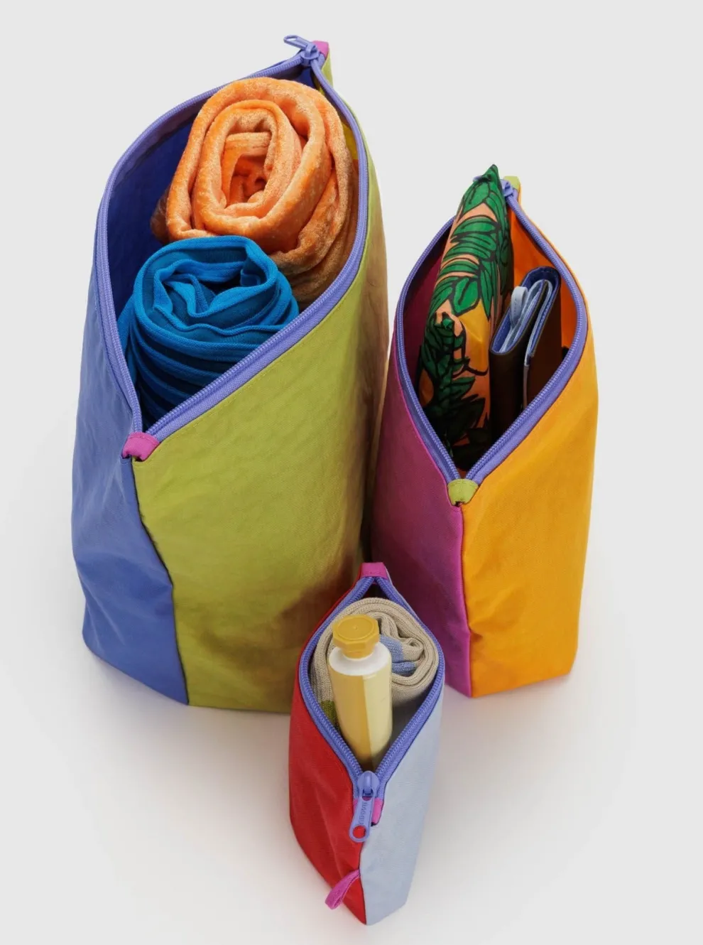 Color Green + Blue L, Orange + Pink M, Red + Blue S