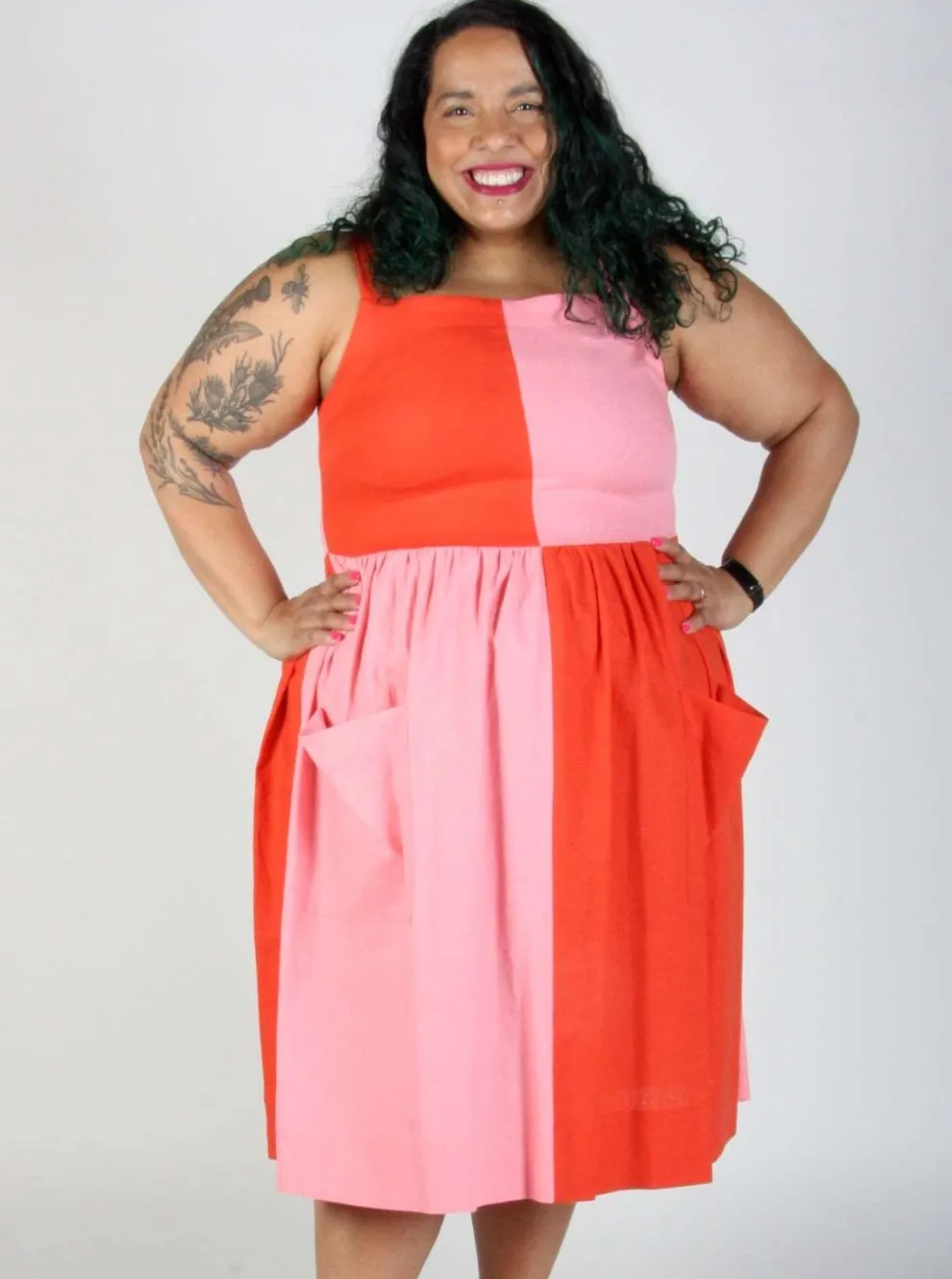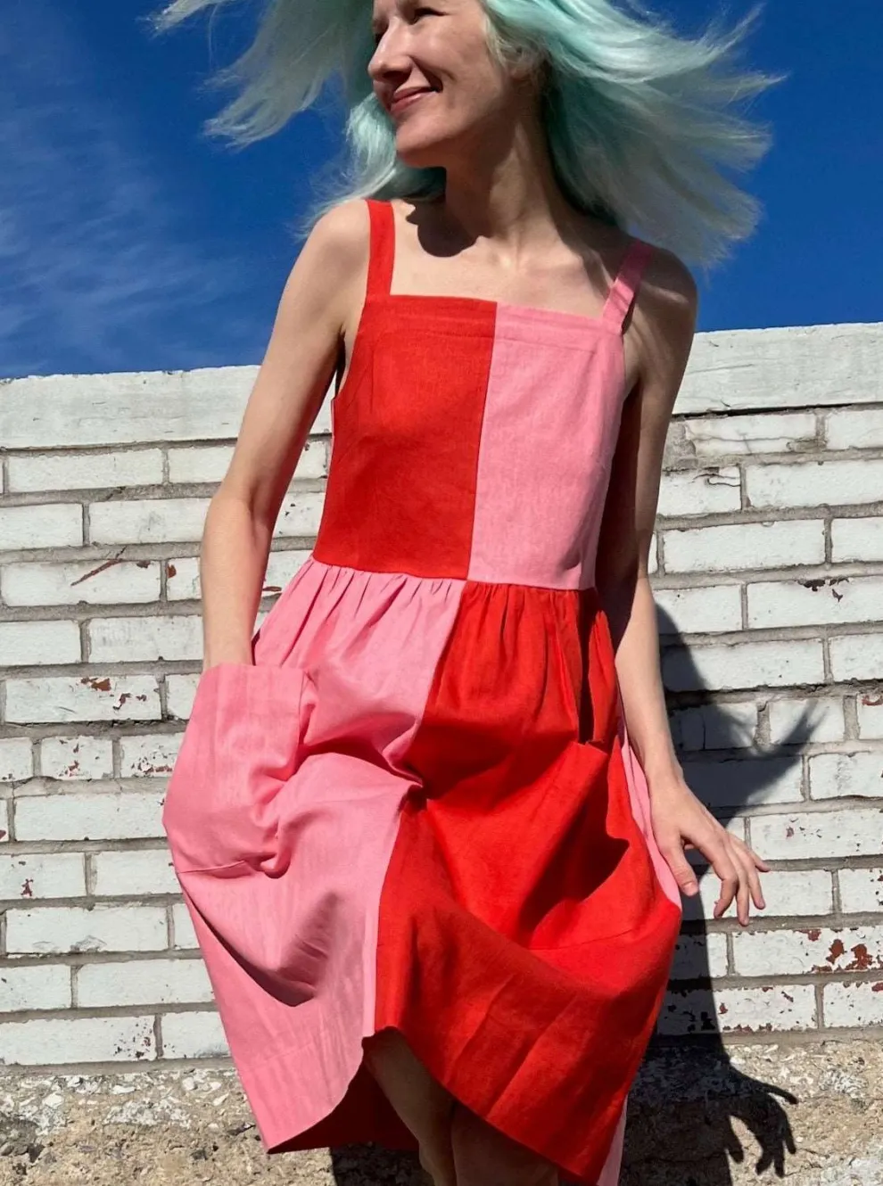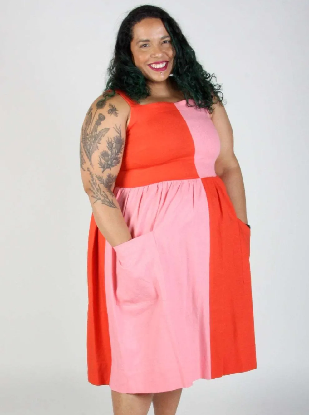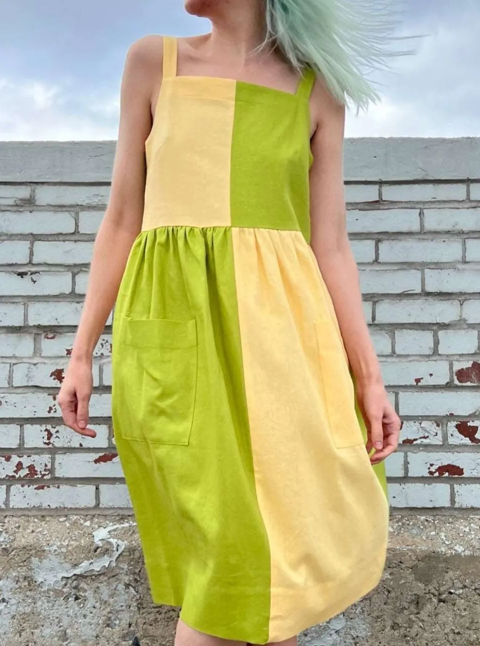 The Timber Doodle dress is the most playful dress in the new BIRDS OF NORTH AMERICA collection with its pastel colors and plaid pattern. It is made of a blend of linen and rayon. It slips easily over the head and has large front pockets.