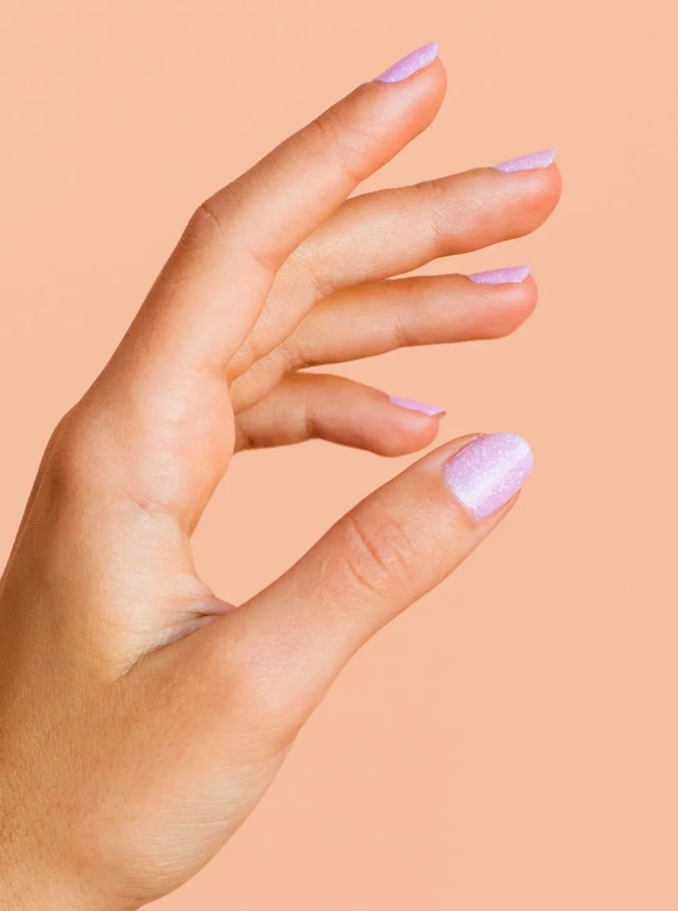 Wonderland: a lilac filled with mini white and matte pastilles. Textured color that offers a subtle frosted finish!