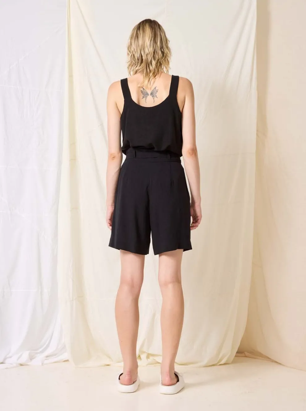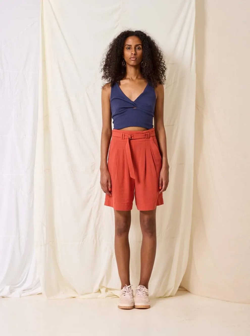 Ideal for summer, these Bermuda shorts have a practical opening at the pocket and an adjustable belt to emphasize the waist.