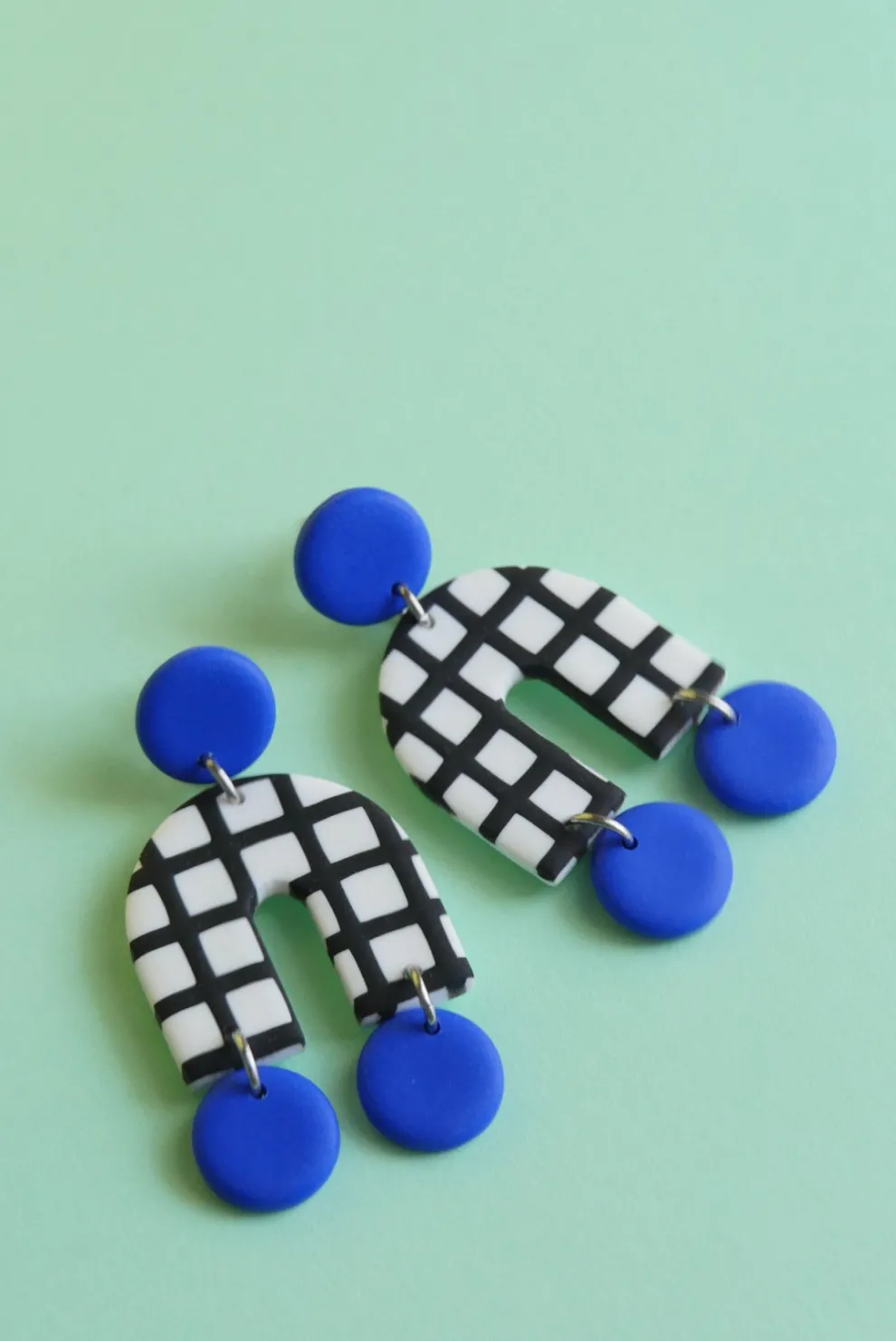 CROCODILE AGILE Arch Earrings – Blue Checks and Pastille