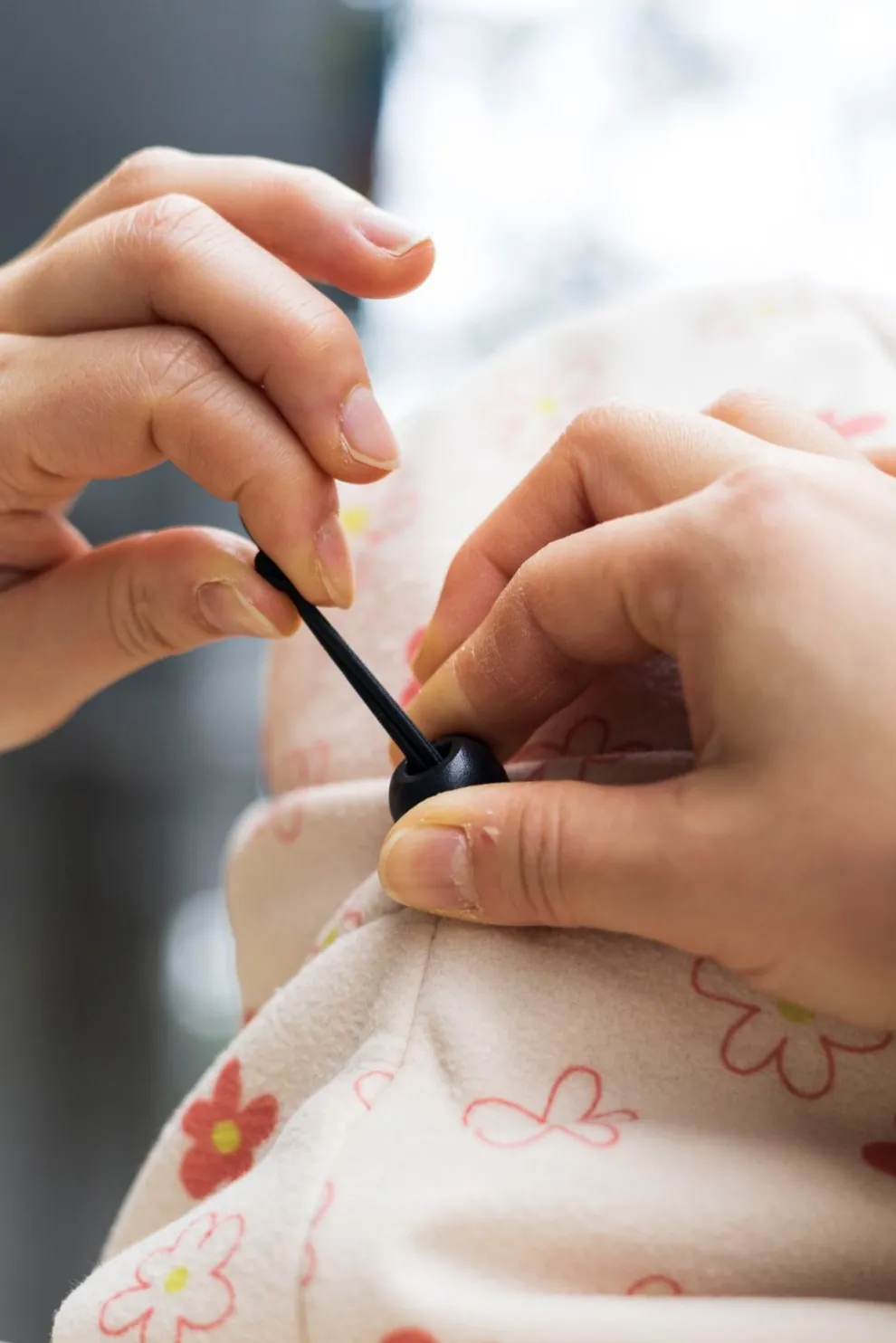 Composition : 86% polyester, 10% rayon and 4% elastane.