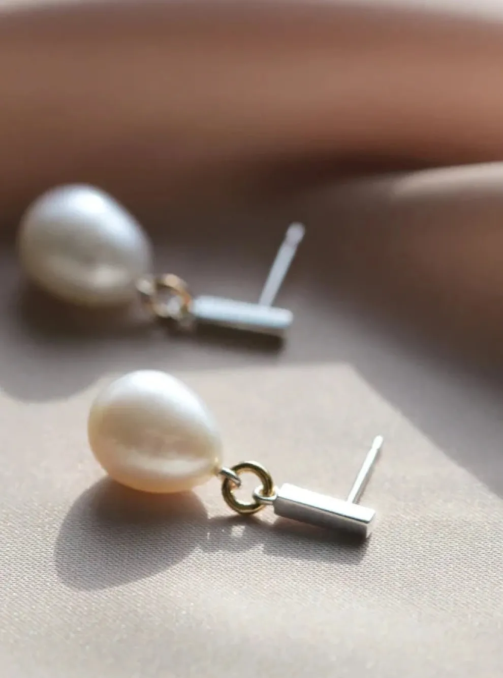 Earrings formed by two rings. The larger one is made from sterling silver and the smaller one is gold filled. The bottom ring hangs delicately below the lobe.