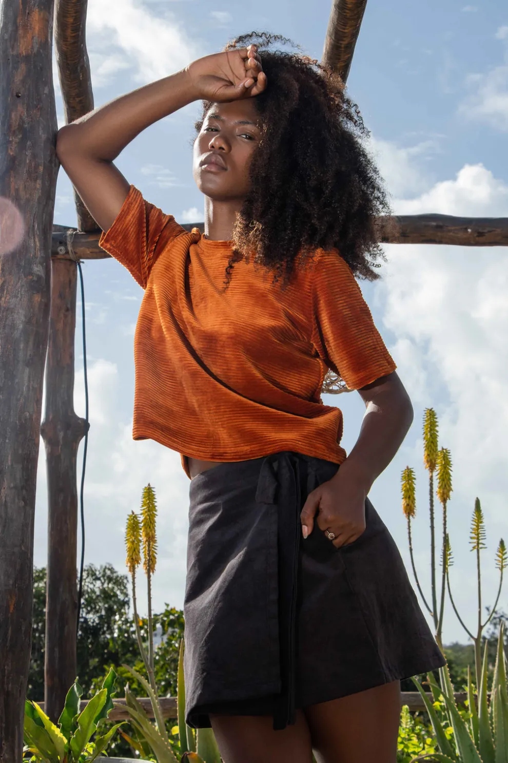 Made from high-quality materials, the corduroy fabric offers a luxurious and comfortable feel, making it perfect for any occasion. Whether you’re dressing up for a brunch date or keeping it casual, this tee is versatile enough to be worn in a variety of settings.