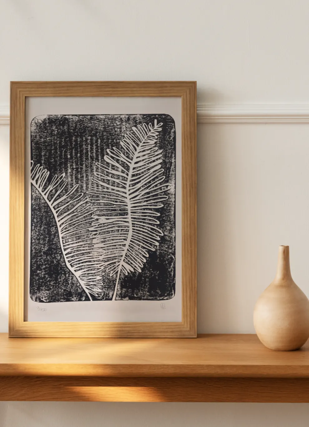 Linocut engraved and printed by hand by the artist. As these posters are handmade, there may be slight variations.
