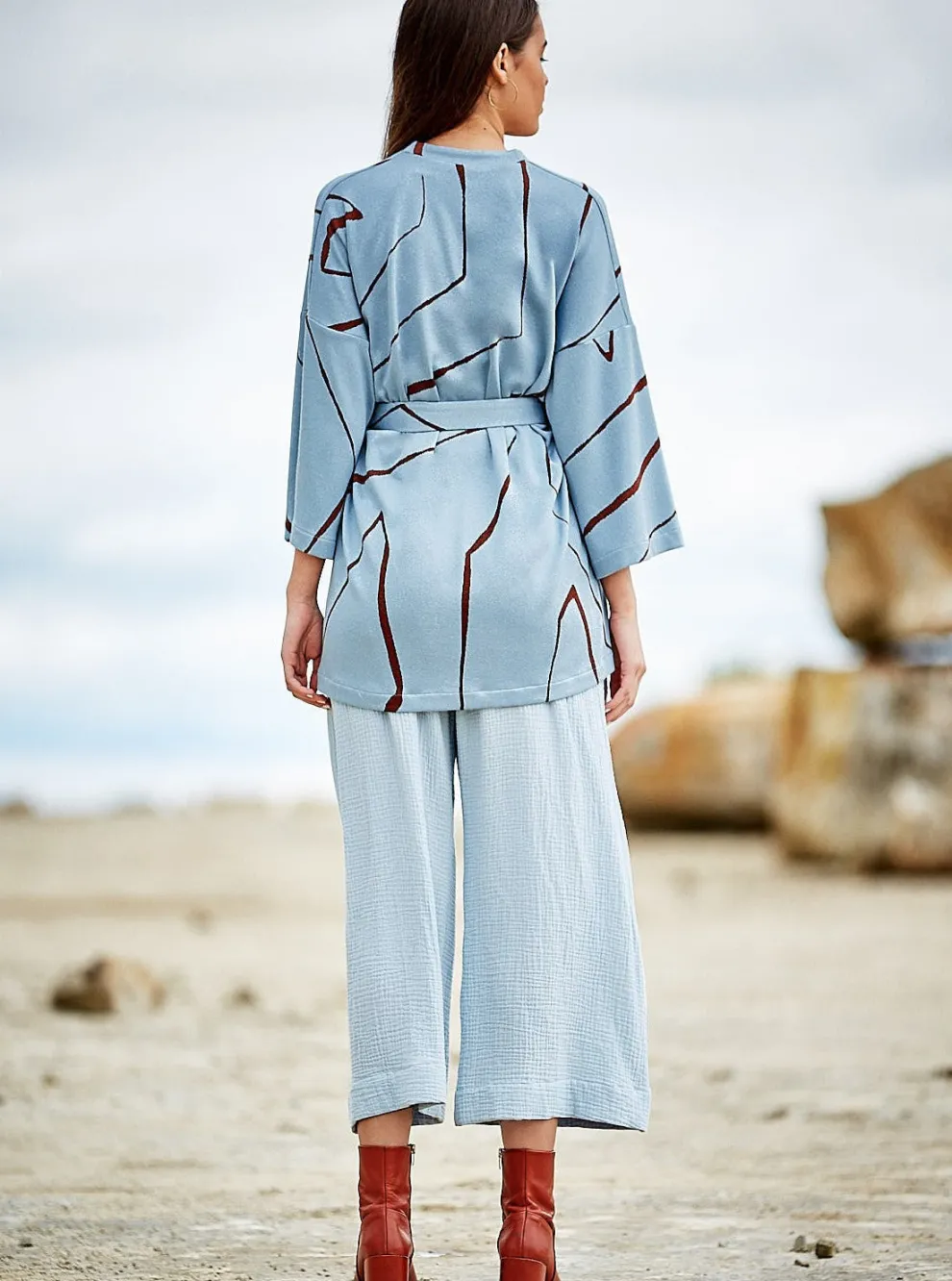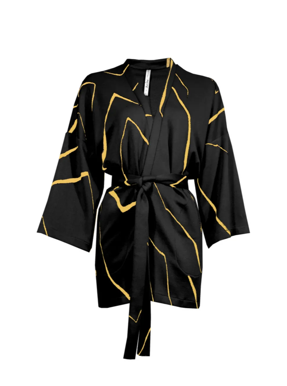 Its kimono cut, cinched waist, unique pattern and loose sleeves make our ELISE cardigan an original item to add to your wardrobe! Made of a viscose blend, its fabric is durable and hard-wearing and will hold its color for years to come.