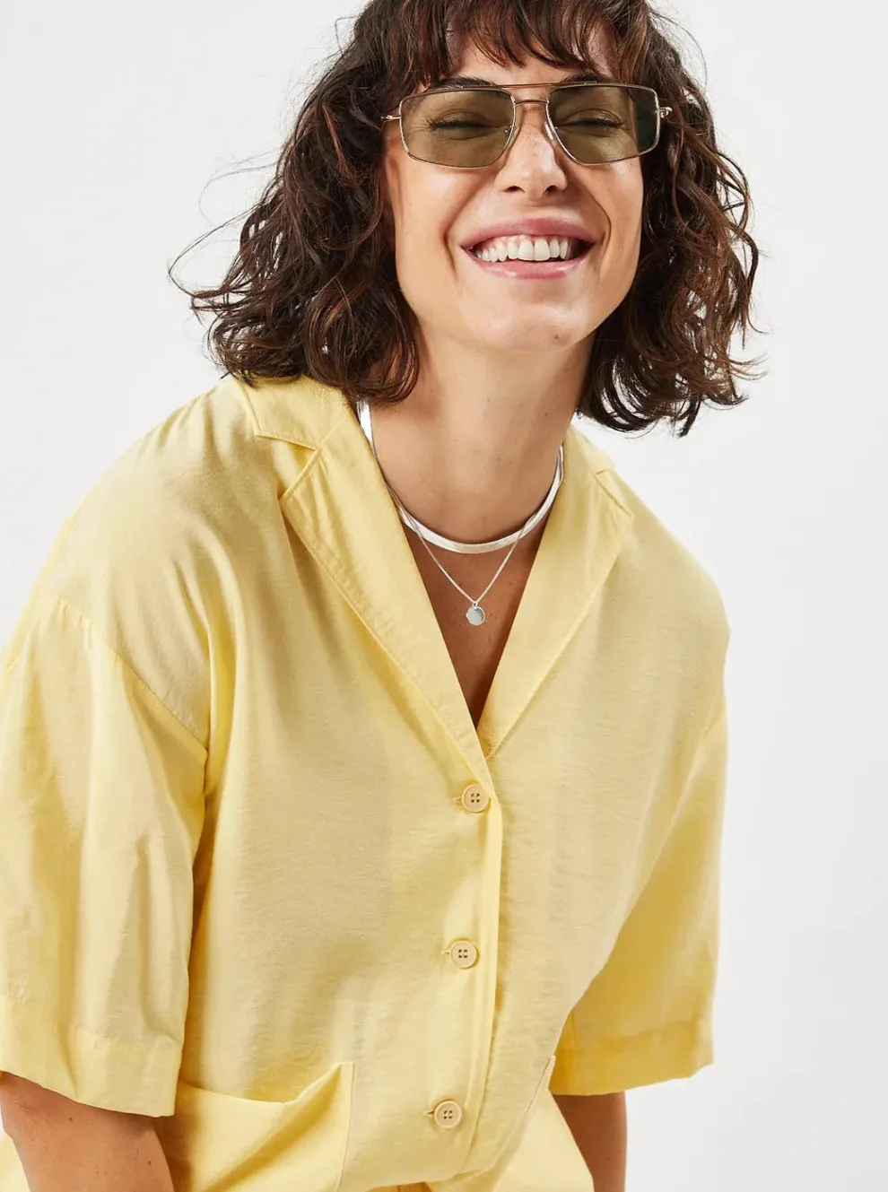 Short-sleeved shirt crafted from viscose and nylon lenzing™ecovero™ for a soft, slightly shiny quality. The shirt has a loose fit and features a label collar, button fastening, wide elbow sleeves and two large pockets.