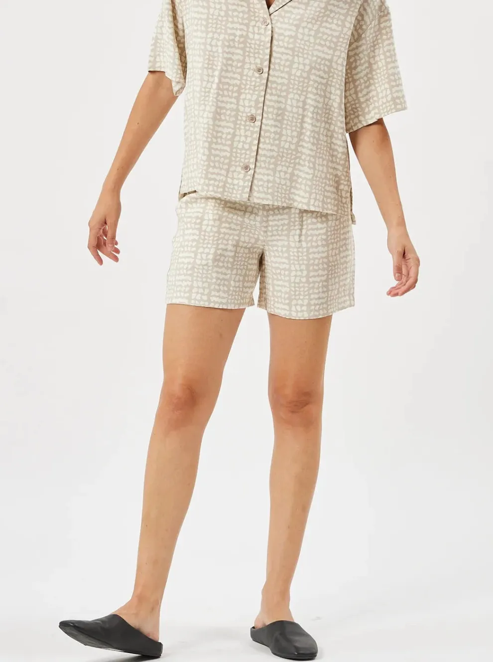 Shorts made from polyester and viscose lenzing™ecovero™ for a soft, lightweight quality. The shorts have a regular fit with straight legs and a normal waist. It is designed with side pockets, an elasticated waistband and an abstract print.