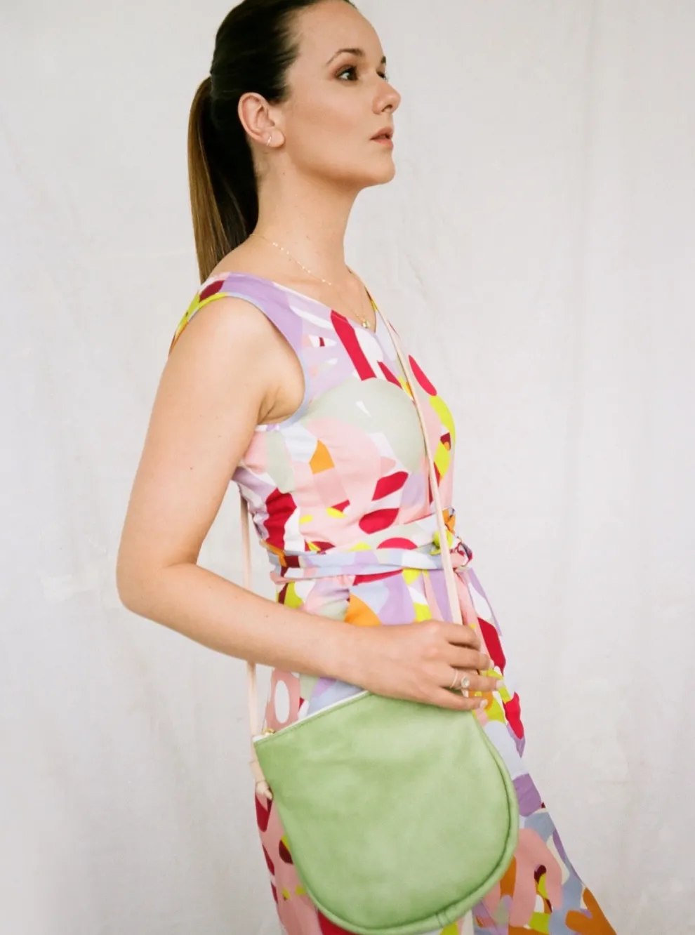 Leather handbag with shoulder strap. Made in Montreal with recycled materials.