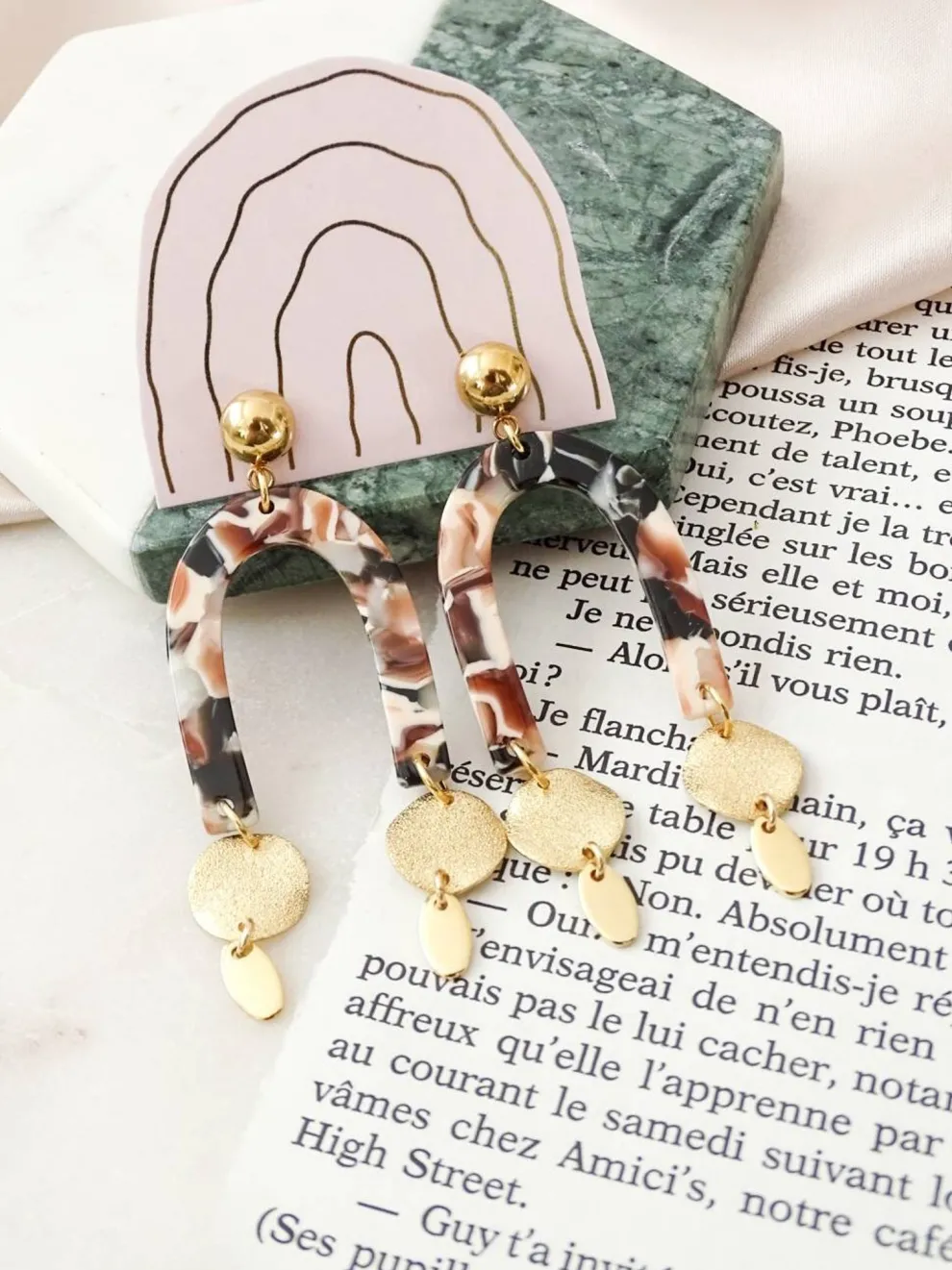 These Art Deco-inspired earrings are handmade in Quebec. Their unique shape makes these earrings the perfect summer accessory!