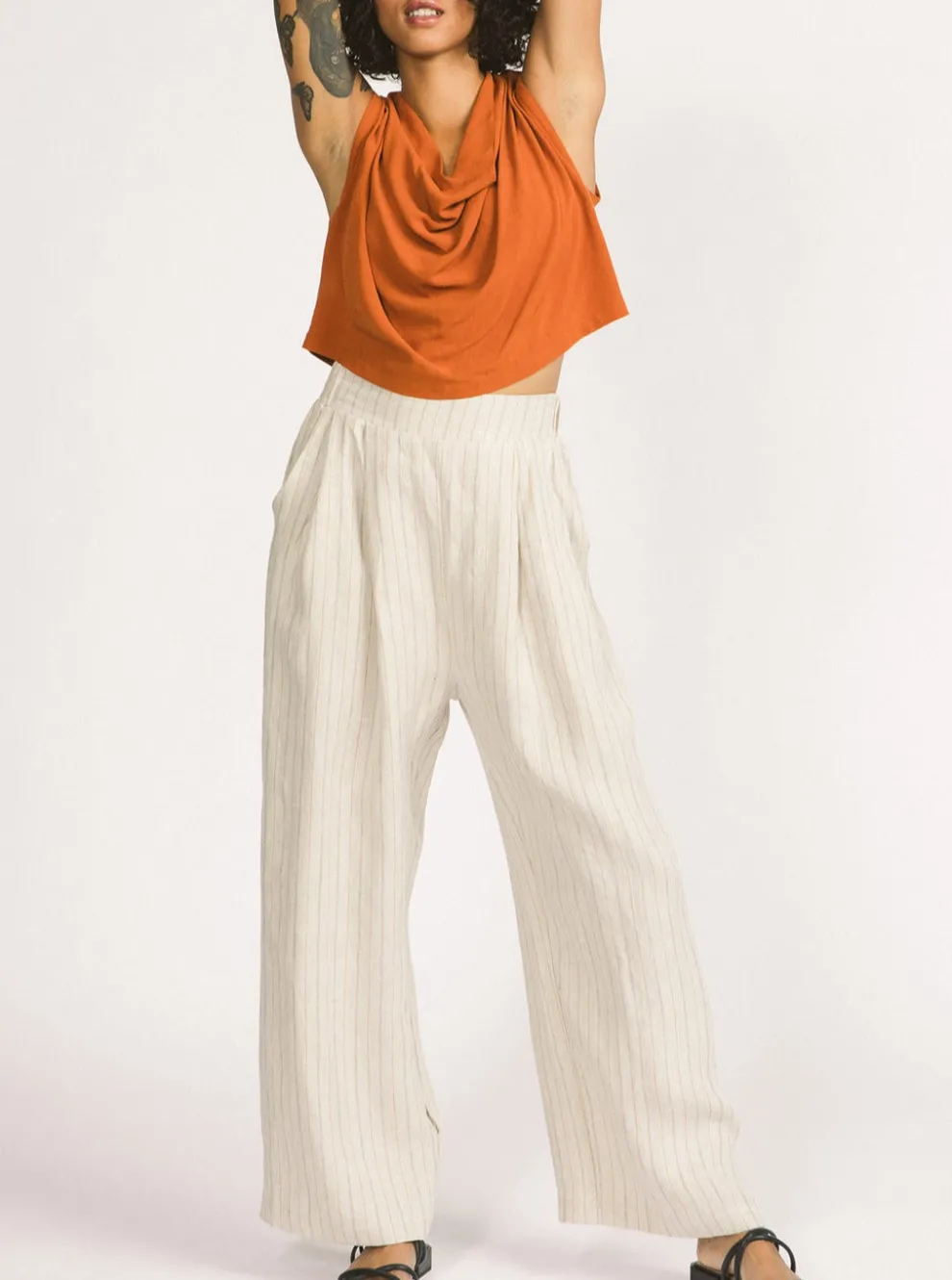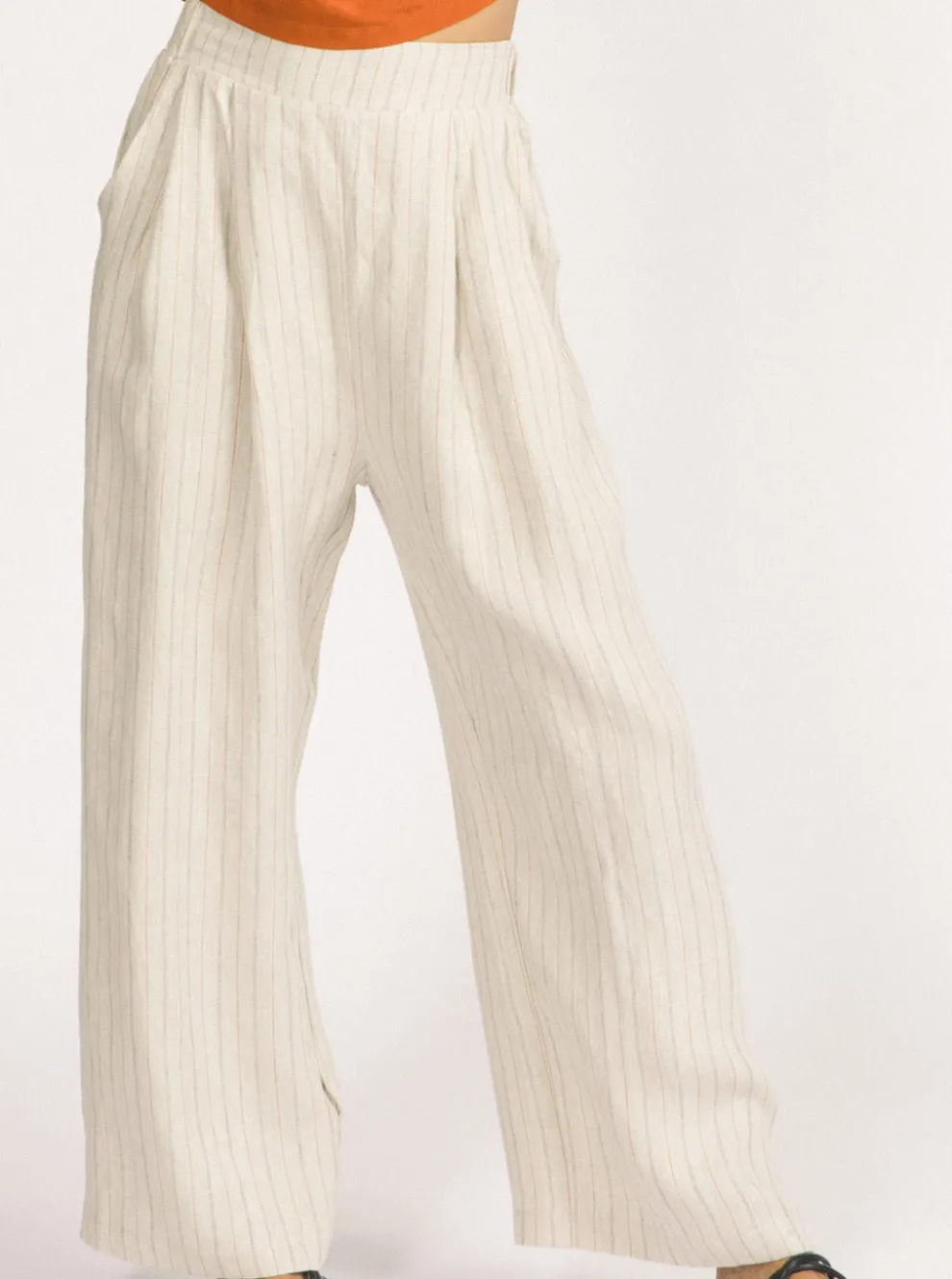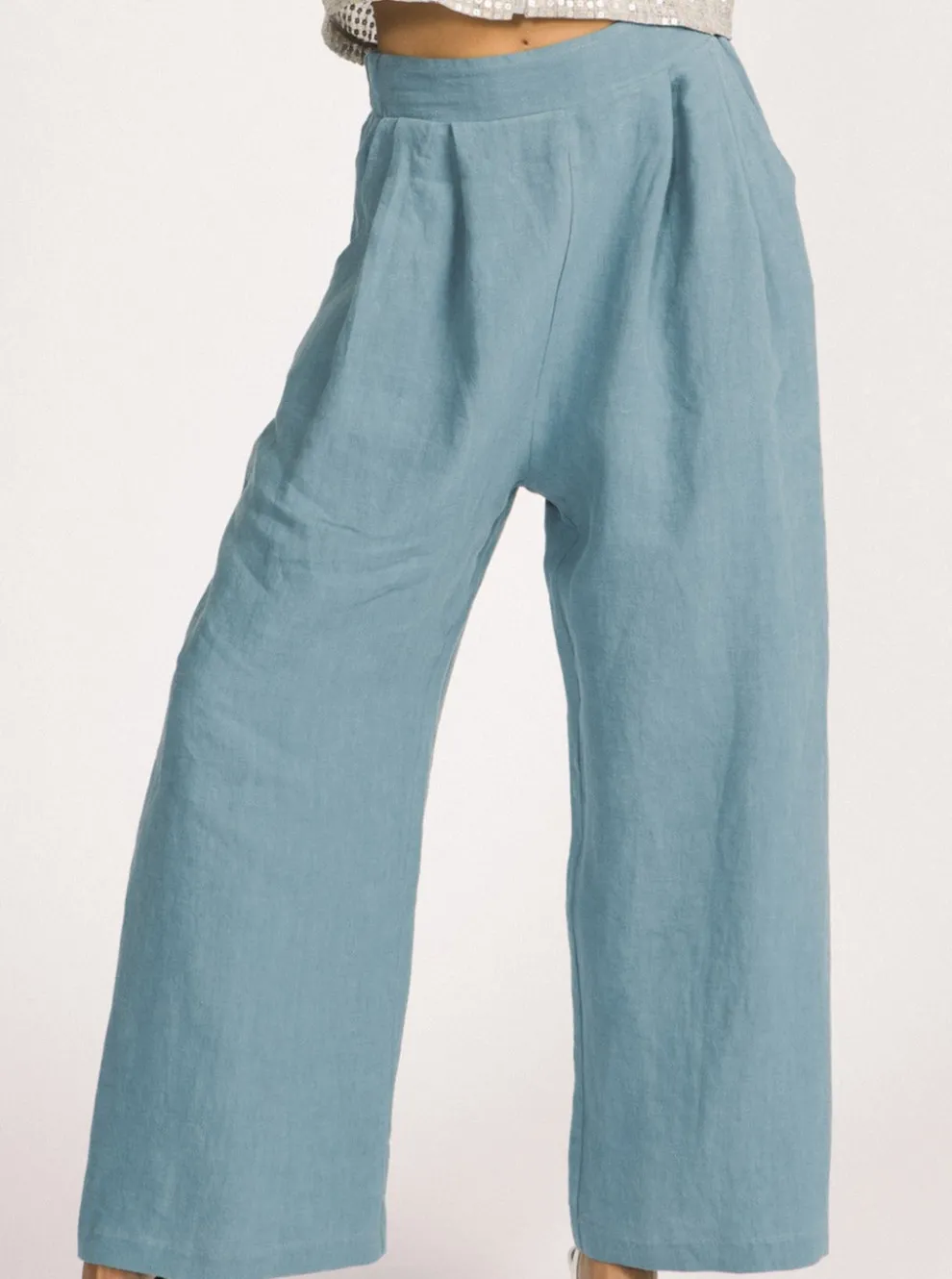 Loose pants with a flat front and side elastic. The front has pleats and pockets. Let yourself be seduced by these pants which will highlight your figure.