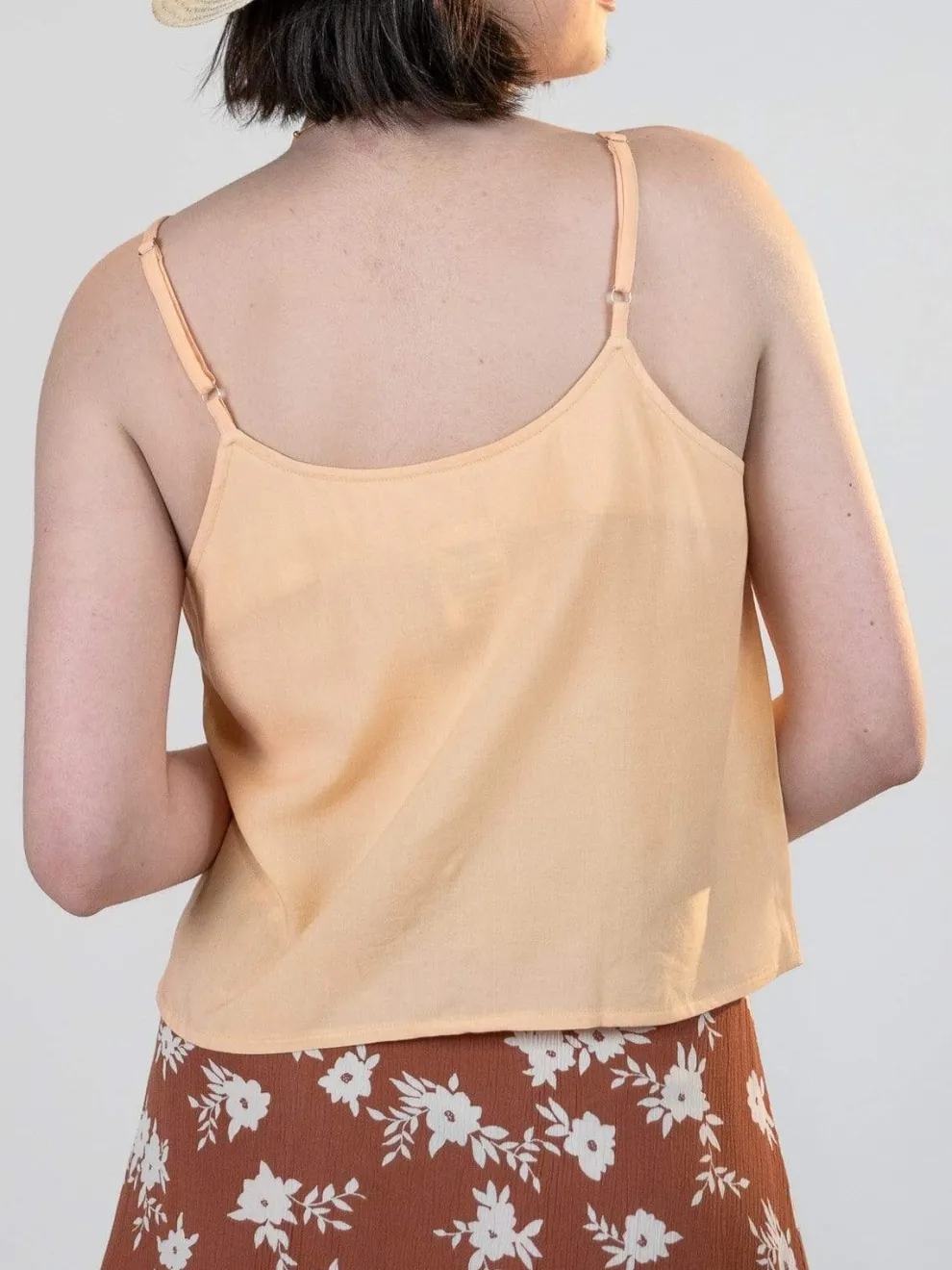 Button front tank top with adjustable straps.