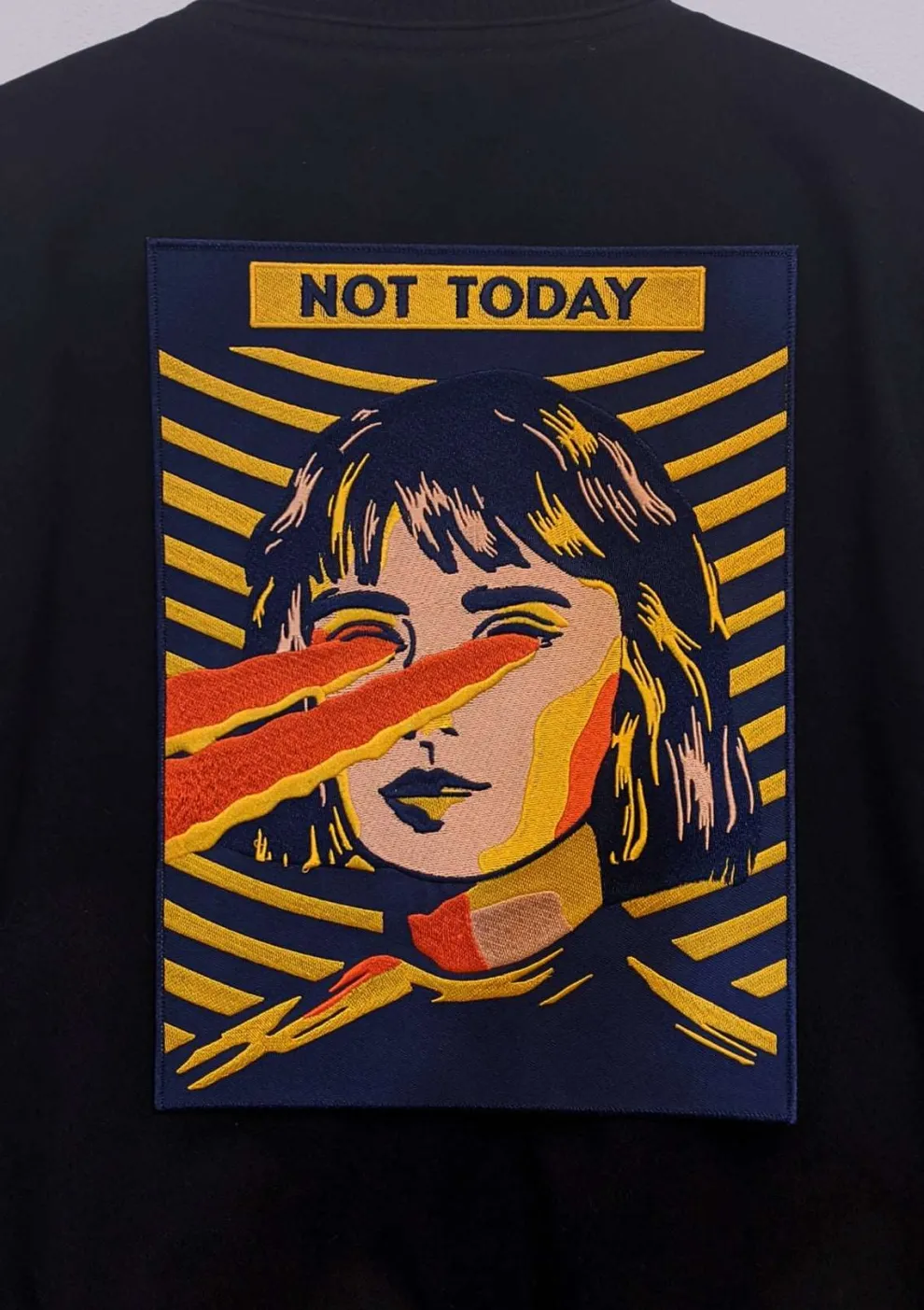 This patch fits perfectly on your jacket to warn potential enemies (people walking too close to you).