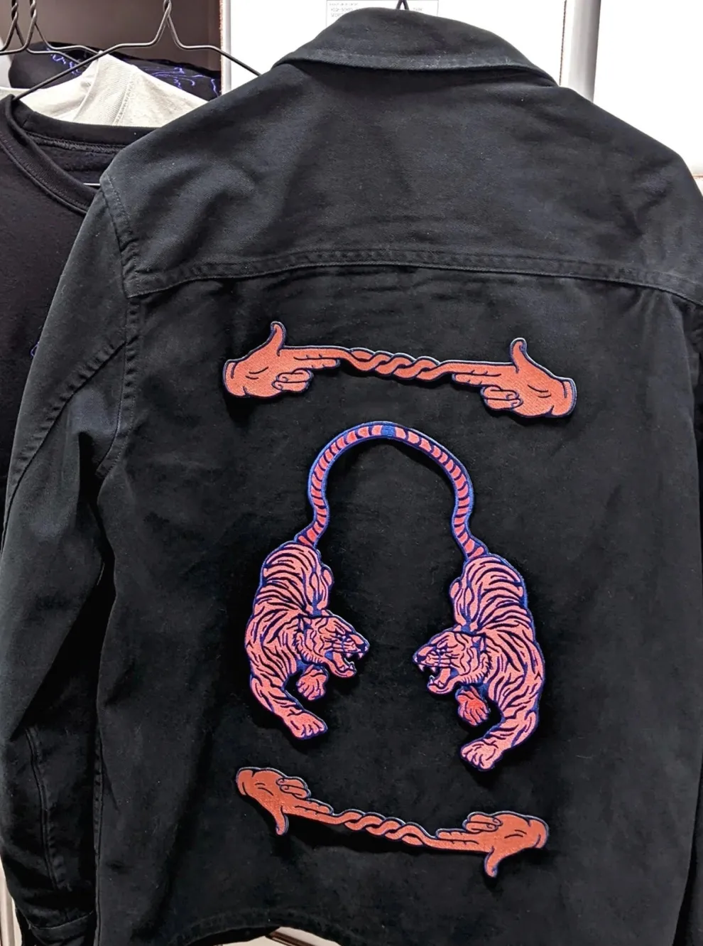 Ironing on embroidered patch.