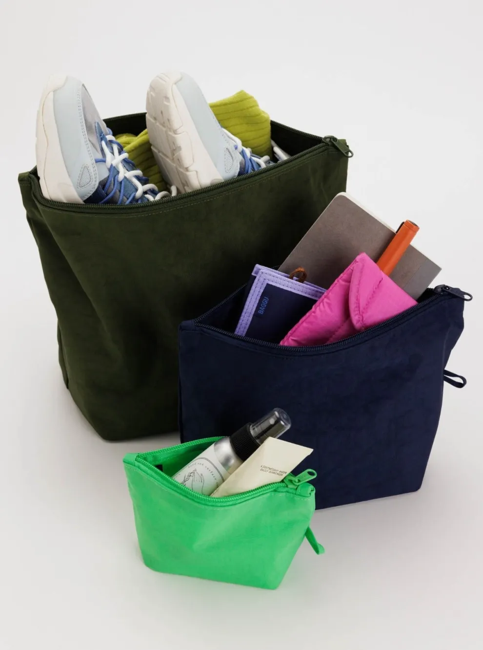 Storage pockets, convenient to organize your bag. The pouch inflates to hold your essentials and lays flat when not in use.