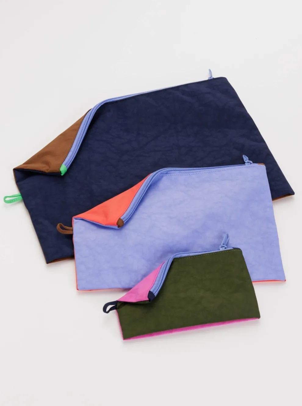 Size Green & Pink S, Navy & Brown L, Purple & Orange M