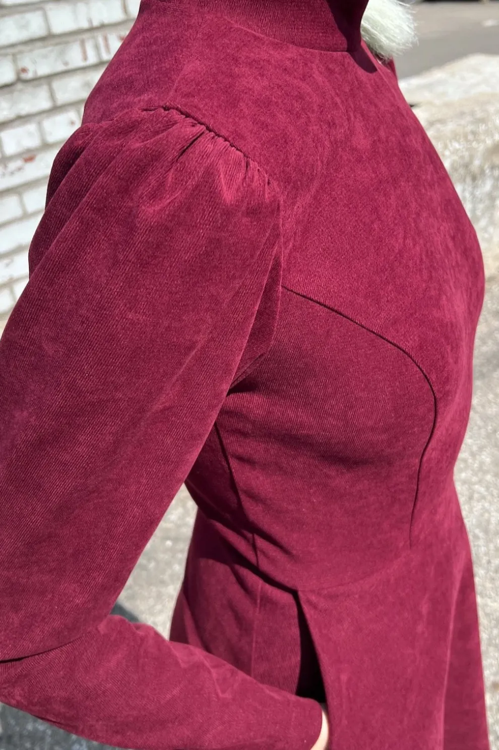 For the first time ever, you can get Topaz in a solid version! While the cut has become a bit of an outsider since it launched in 2020, it still features long sleeves, a mock neck, an A-line skirt with pockets, and is made from a velvety stretch fabric. The skirt is lined with soft satin, and the dress closes at the back with an invisible zipper. The fabric is very pleasant, with a suede-like brushed finish and perfect elasticity thanks to to its composition of 97% polyester and 3% elastane.