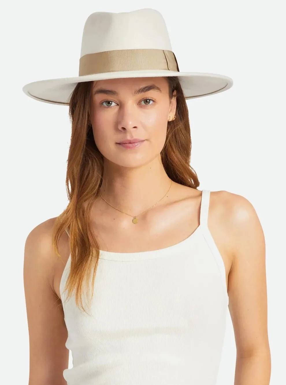 Prepare to receive compliments. La Joanna is one of our most beloved silhouettes, now made from cruelty-free felt. It has an elegant pinch with a teardrop pleat and a flat edge. Wear it straight or angled and pair it with everything in your wardrobe. Grosgrain band and metal headgear plate.10cm / 4" brim100% Cruelty Free Wool FeltLight stretch for a flexible fitGrosgrain bandMetal headgear plateAdjustable Velcro strap under inner sweatband