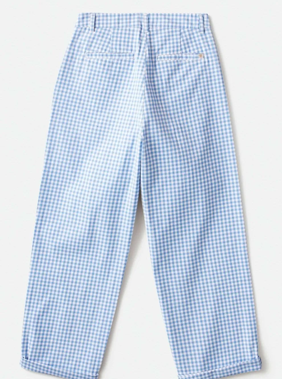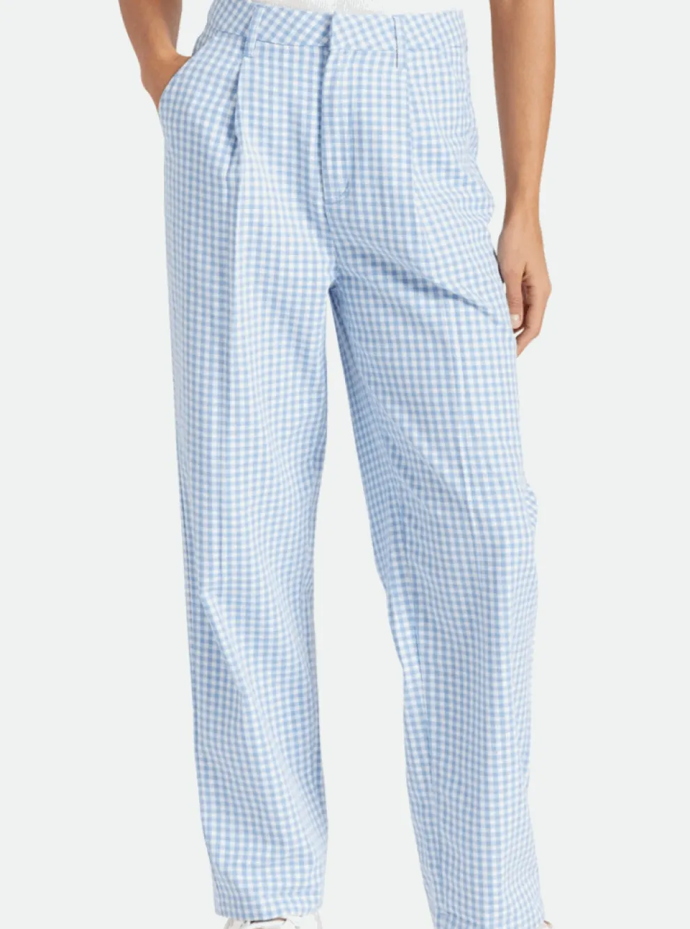 100% cotton high-waisted pants for comfort and style. Featuring back pockets and waist pleats, these loose-fitting pants transition easily from work to weekend.
