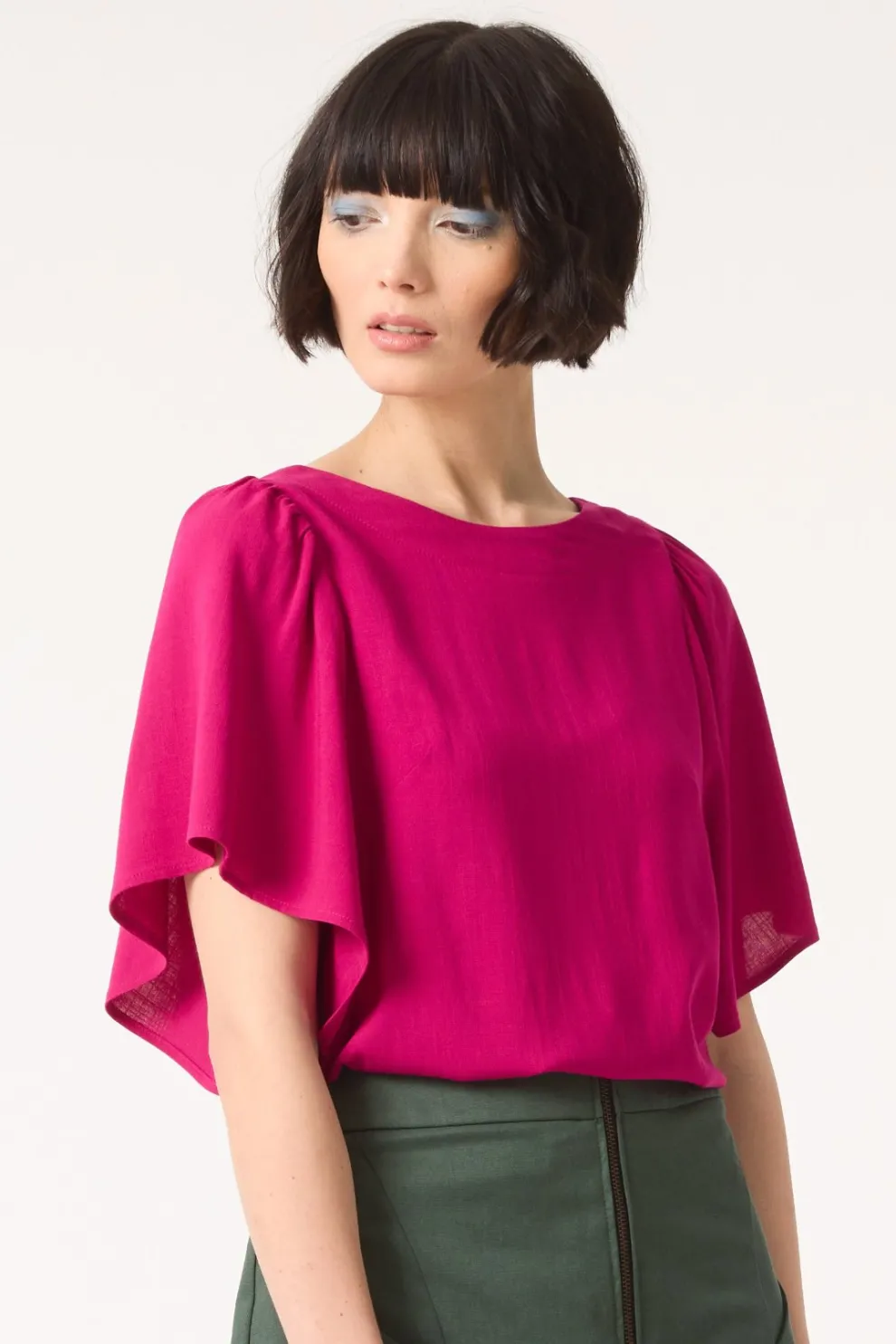 This charming, light and airy top will add a touch of cheerfulness to your outfits. We are particularly fans of its ruffled sleeves, so vaporous.
