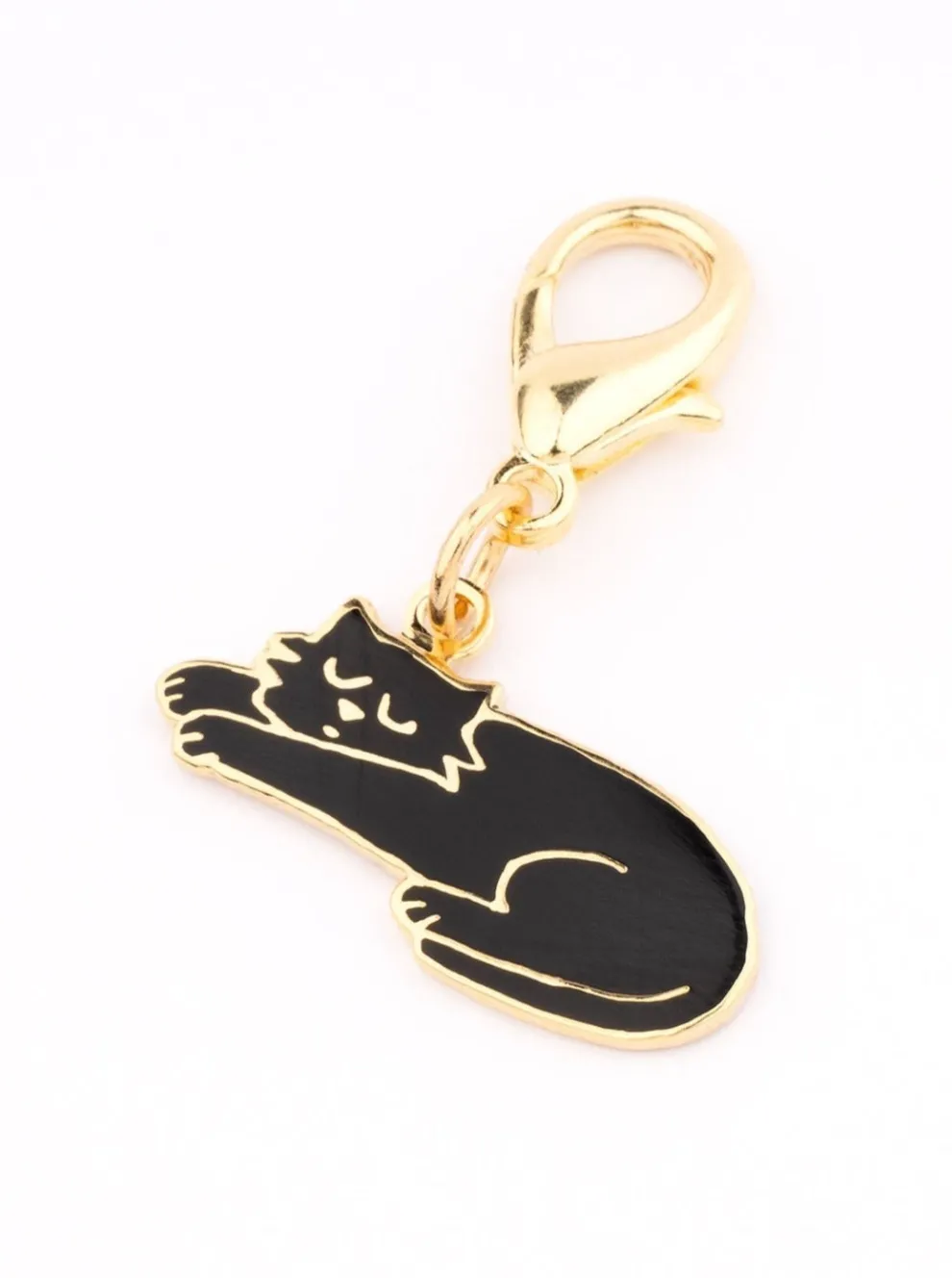 A little black cat dozing off with a relaxed face to watch over your bunch of keys.
