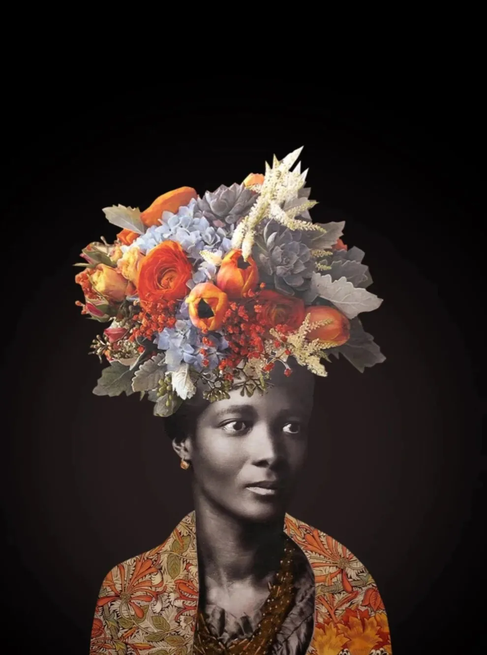 The original work is a collage made from an old photo. This work is part of a series of paintings representing influential women of their time and inspiring for the artist.