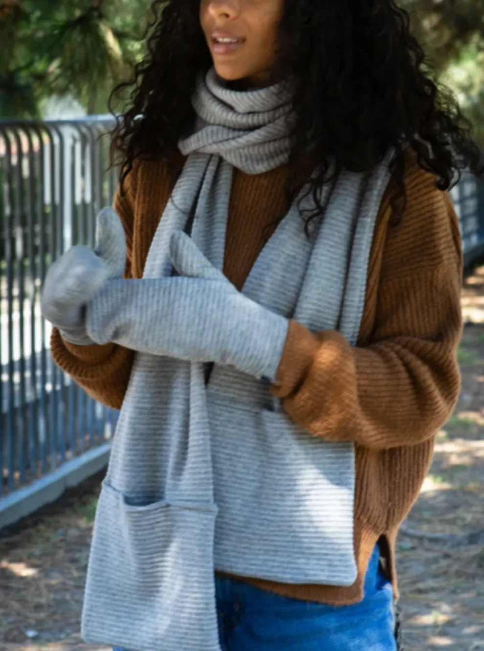 Ribbed scarf with hidden pockets at the end. It is perfect to face the winter days!