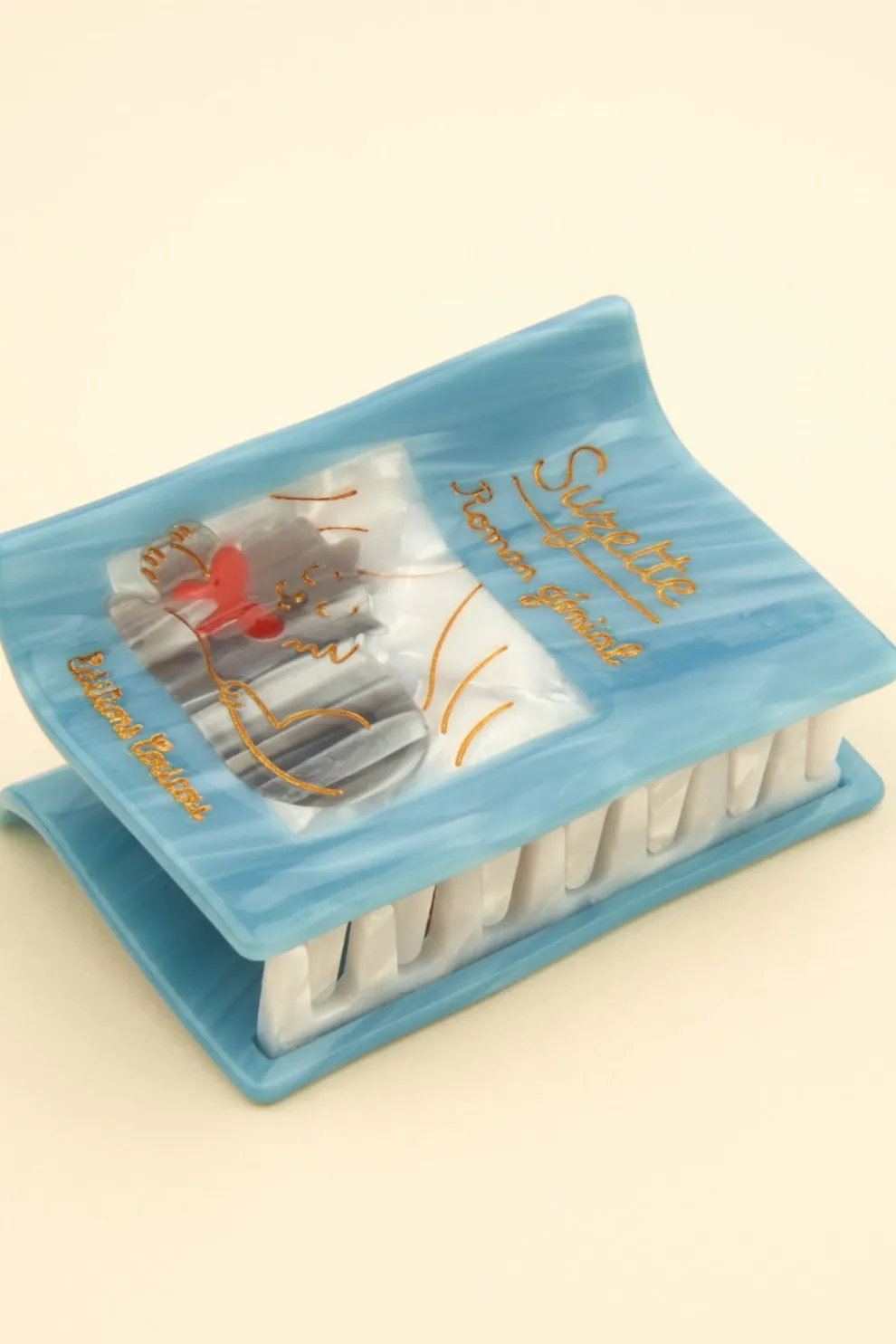 Yes, it is indeed a hair clip in the shape of a book! But be careful, not just any book: the “Roman Génial” by little Suzette. A book to take with you everywhere.
