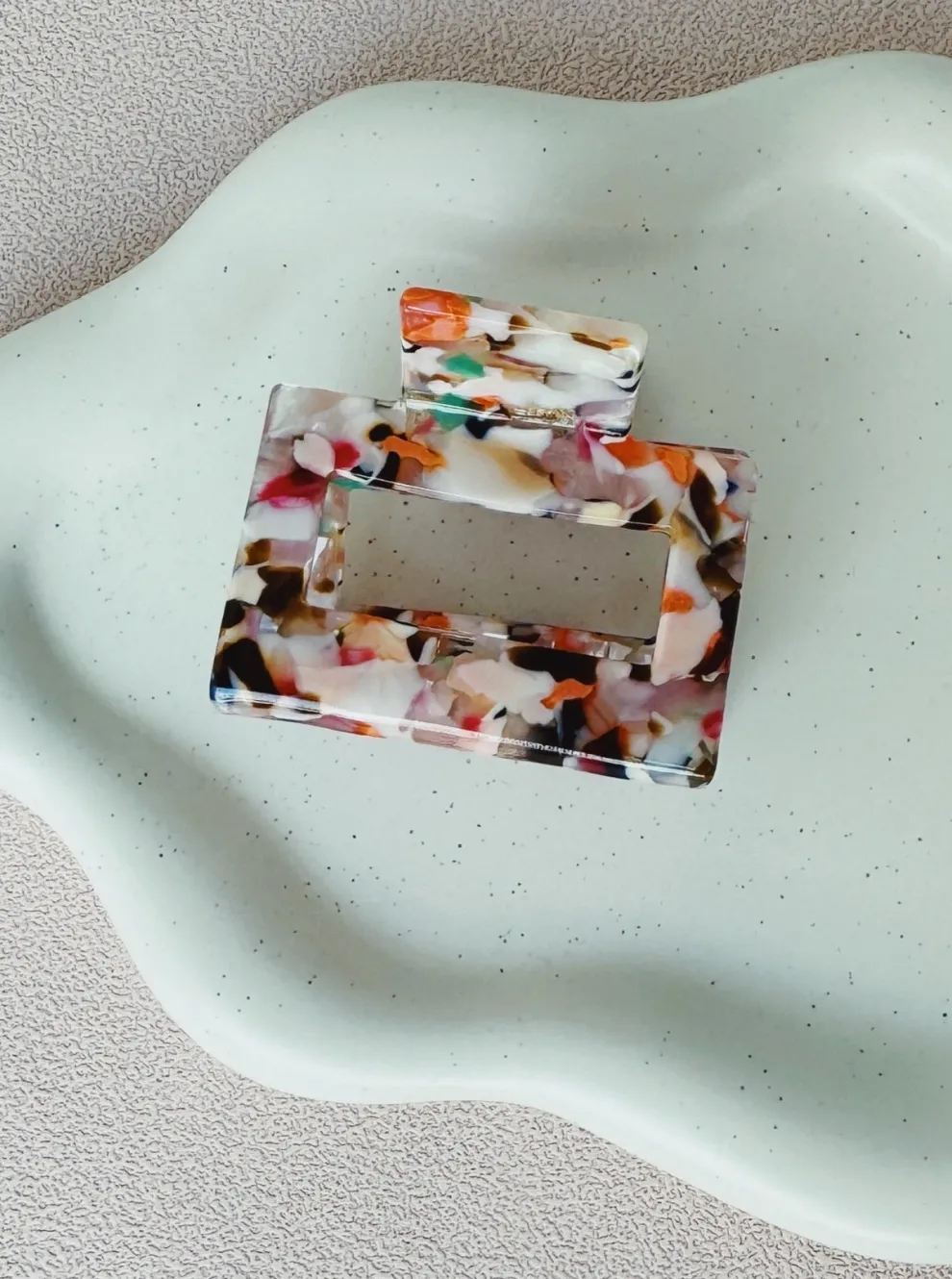 These clips are made from acetate and the patterns may vary slightly from each other as well as from the photo.
