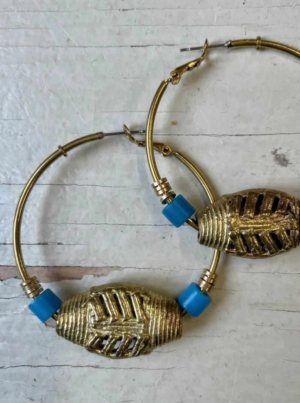 Brass earrings and ceramic pieces handmade in Africa.