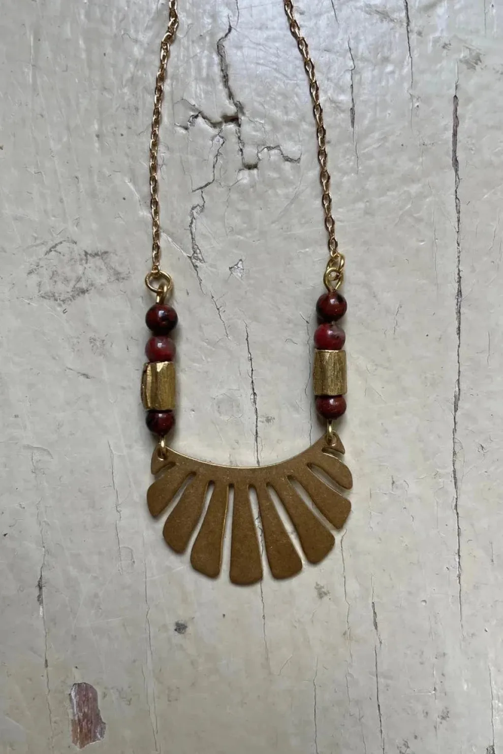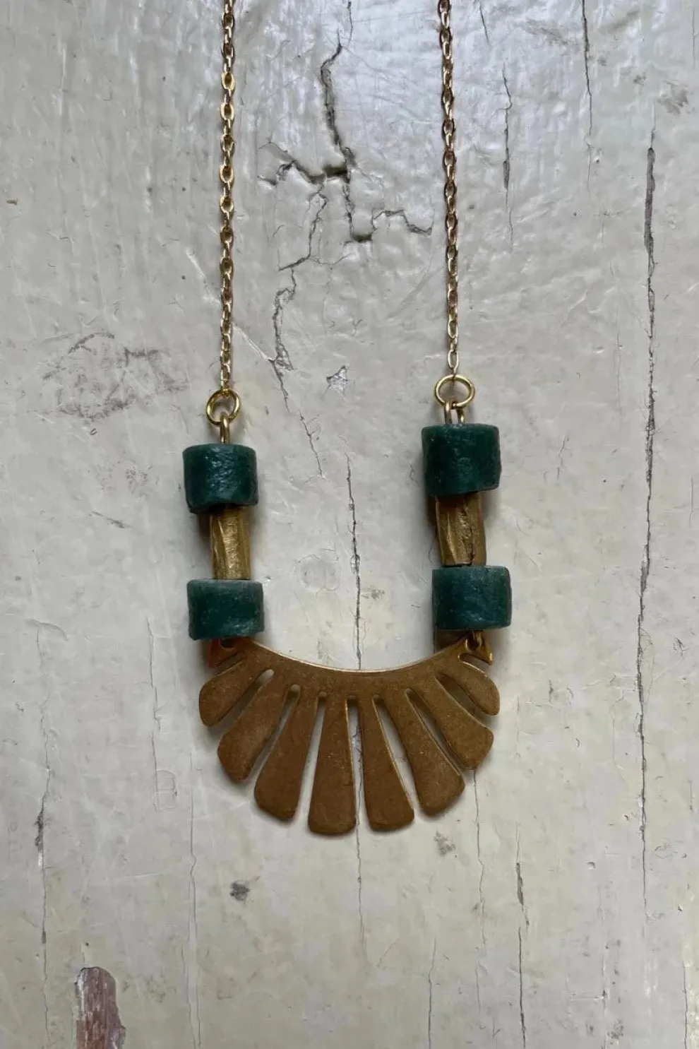 Brass necklace with brass parts and ceramic piece handmade in Africa.