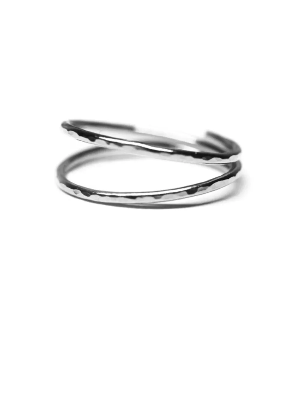 This double ring is made of hammered silver wire. It can be worn as a knuckle ring or as a regular ring.