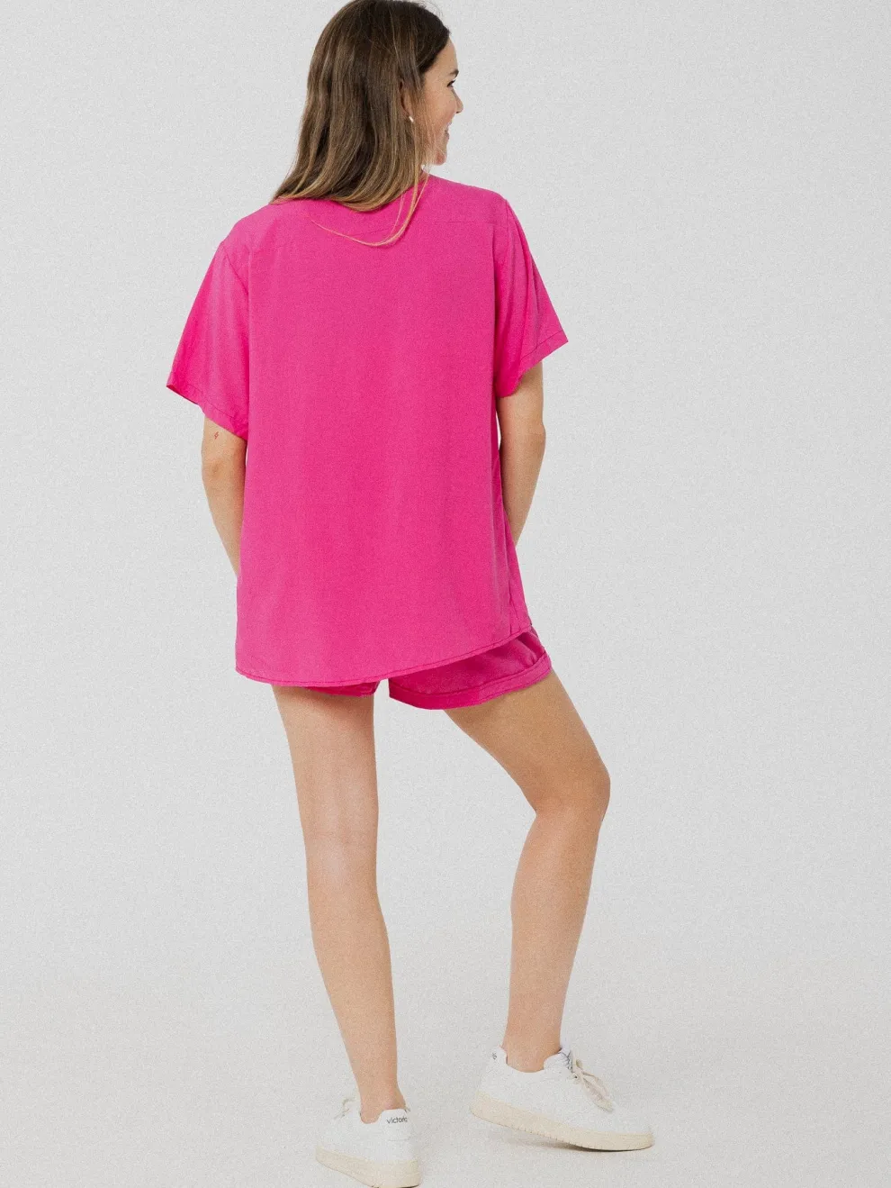 Ultra comfortable pink blouse with short sleeves.