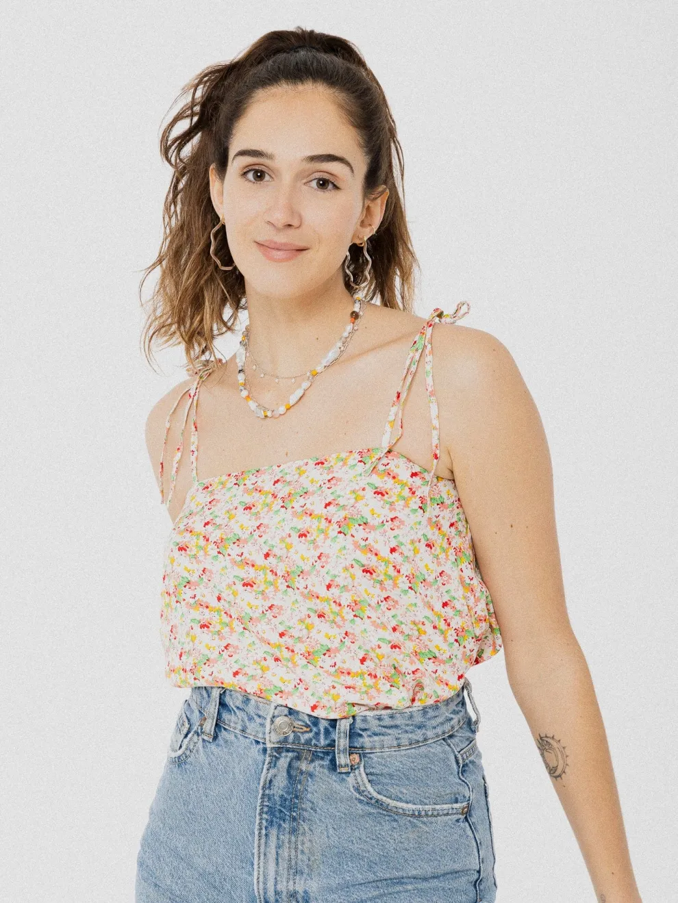 Light camisole attached to the shoulders with pretty buckles.