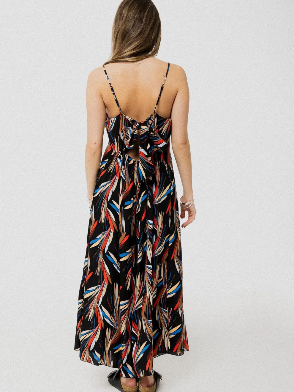 Super comfortable long jumpsuit with adjustable straps and buckle on the back