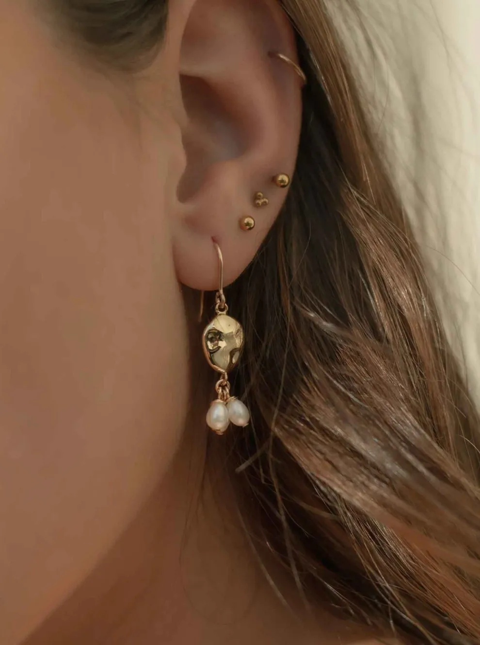 Earrings adorned with freshwater pearls and mounted on 14K gold filled French hooks.