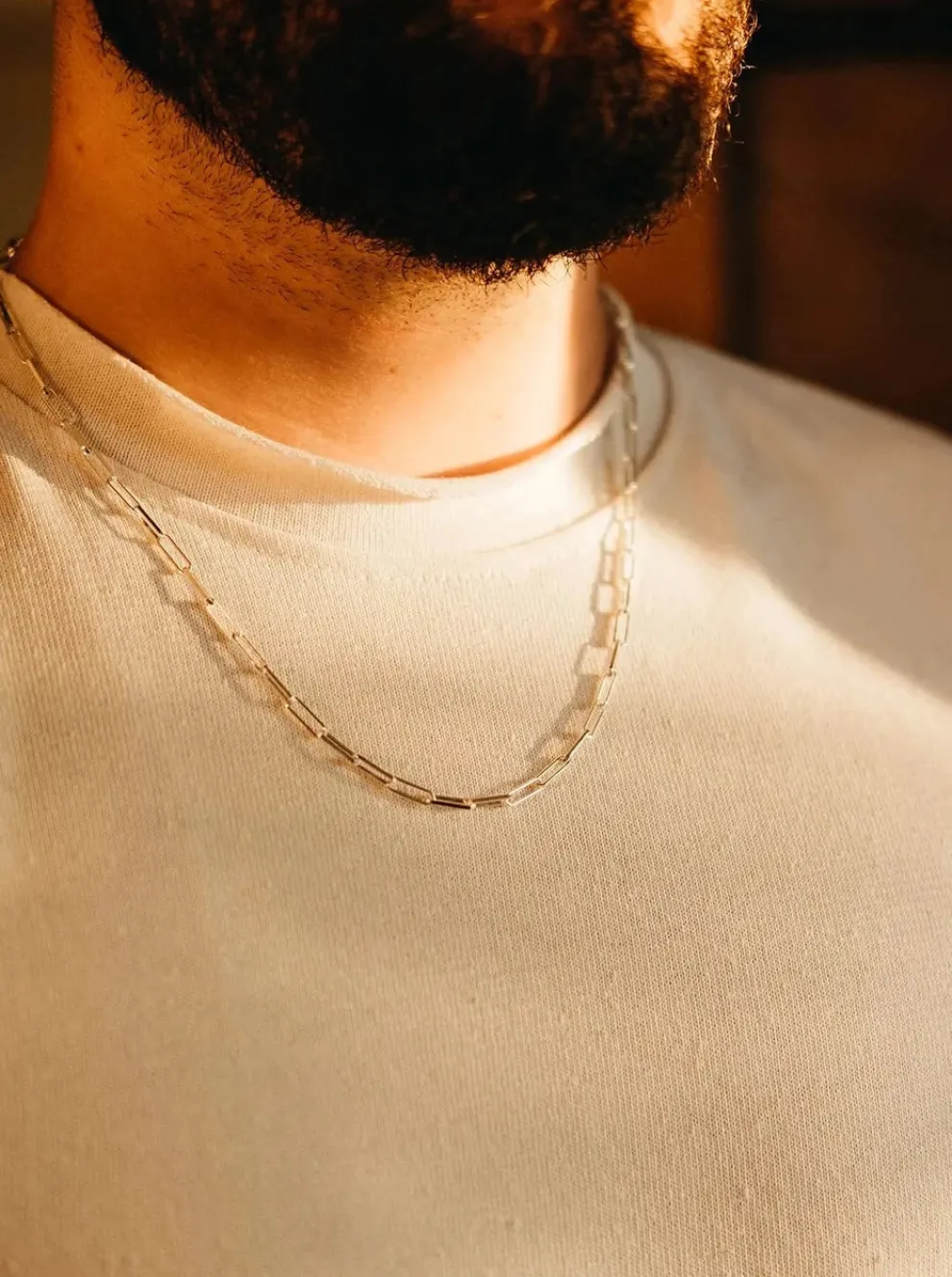 The trombone chain is a chain without pendant whose links are made in Italy.