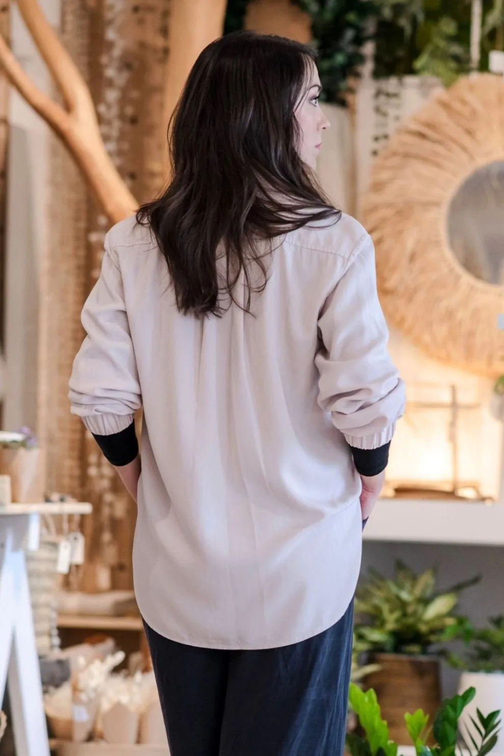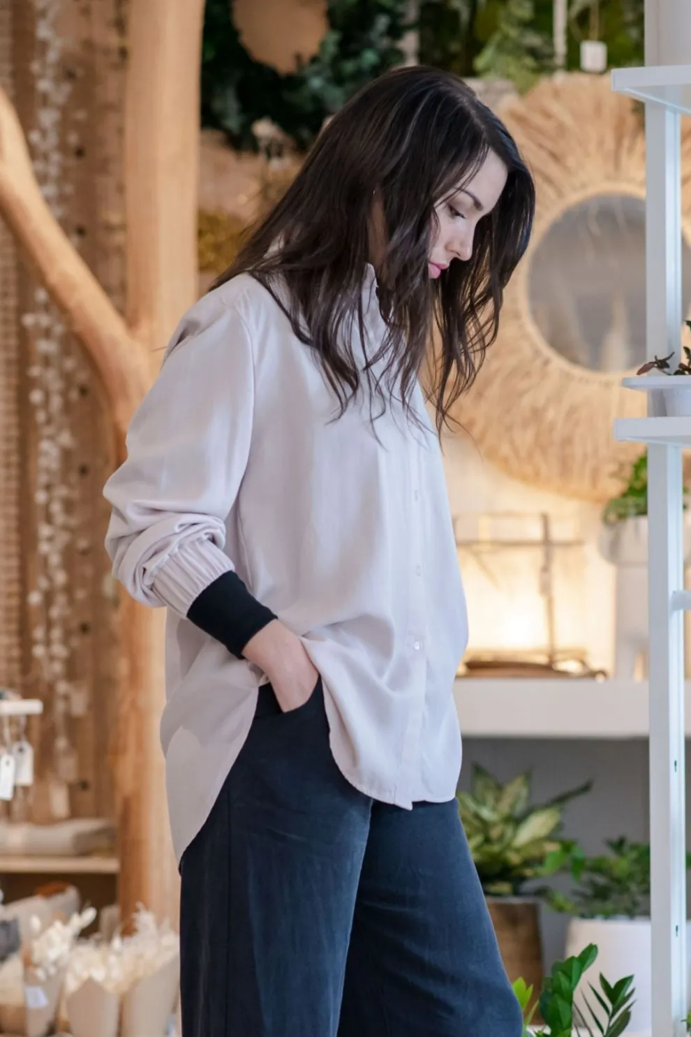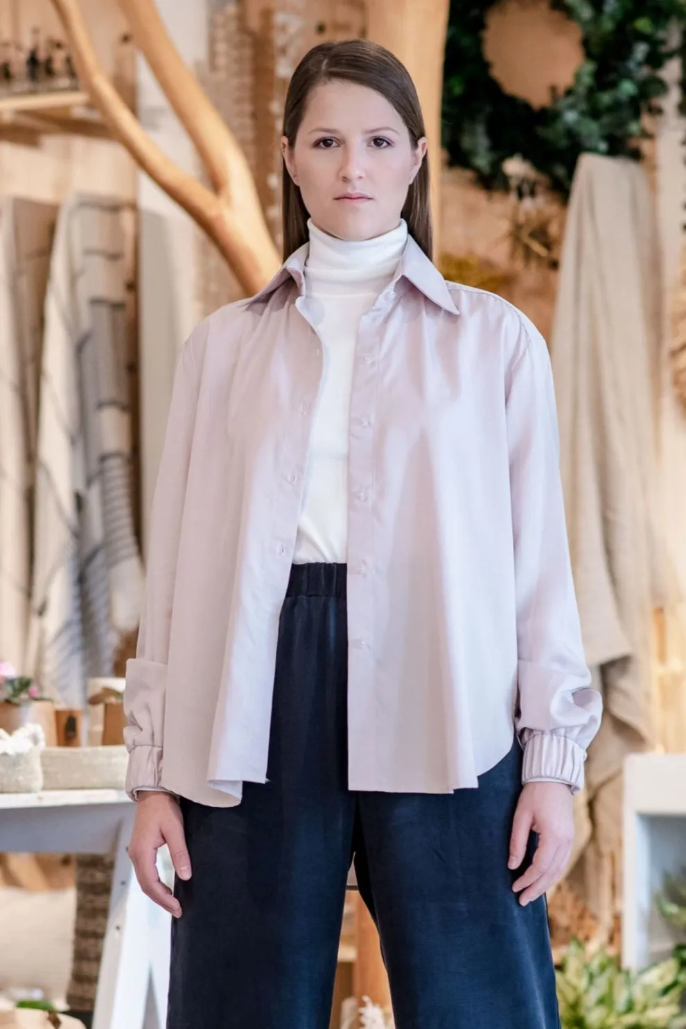 Oversized shirt with elasticated sleeves